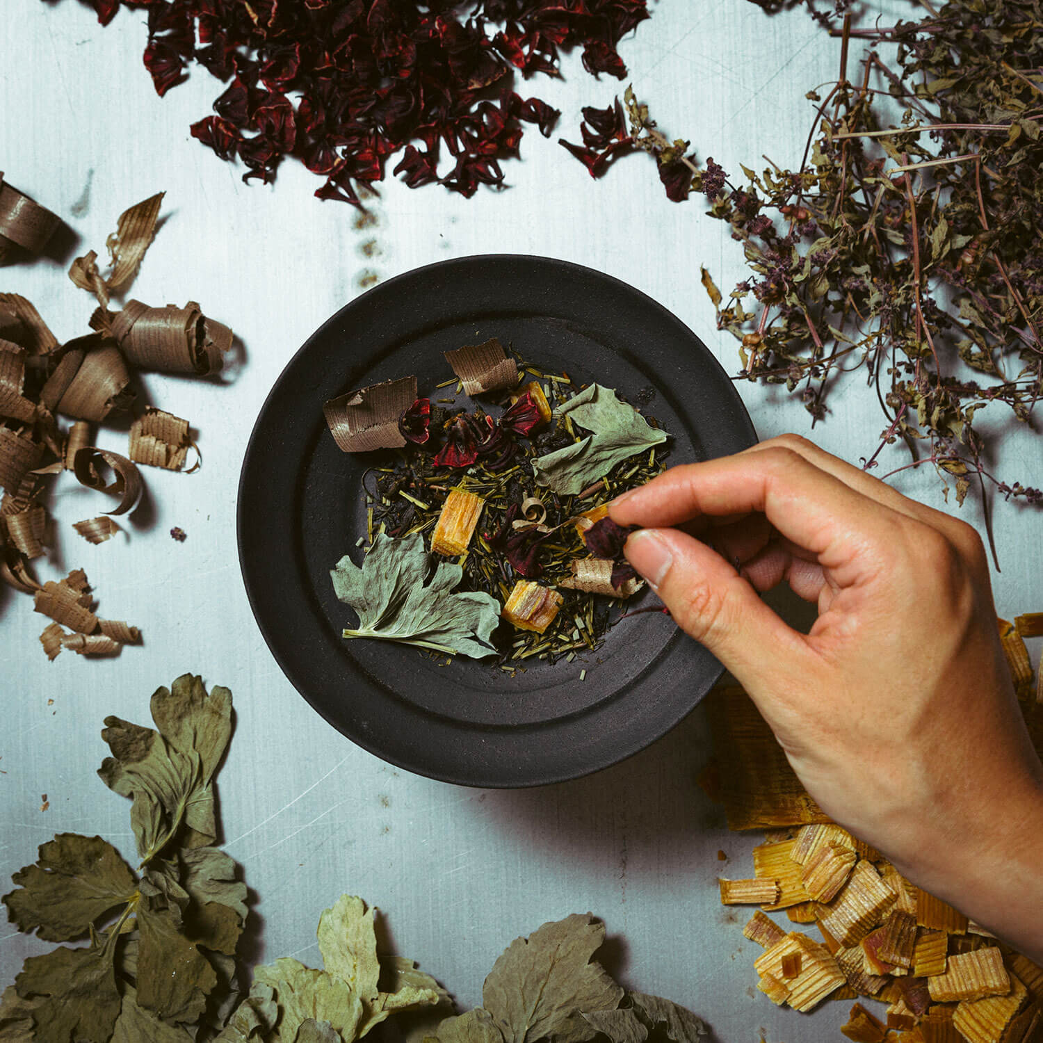 He had the idea to reach out to designer Osamu Saruyama to co-create a tea burner. Thus, Kouro was born, with the lower part made from porcelain, and the upper part, where the tea leaves are placed, made from ceramic. ‘Manufactured by Maruhiro, a ceramicist from the Saga region in southern Japan, this combination of the two materials is the best for optimal diffusion’, Hirotoshi Maruwaka explains.