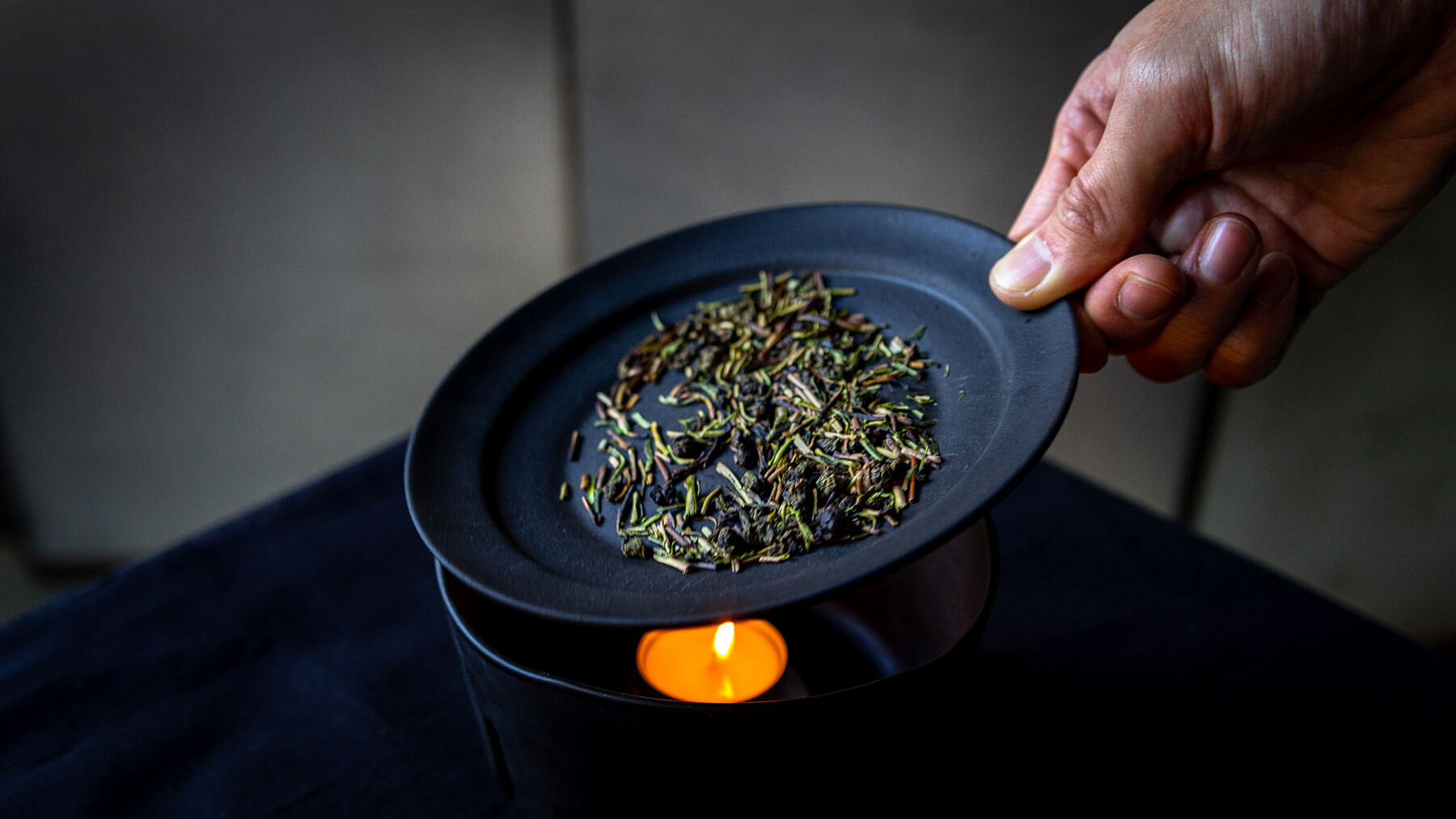 Making it work couldn’t be simpler: just place a small candle in the receptacle and a handful of tea leaves on the plate, then leave it to heat gently until the scent diffuses around the room. Maboroshi use fragrances of green tea, black tea, oolong tea and igusa (herbaceous plants used to make tatami), all kinds of different teas can be used with the burner.