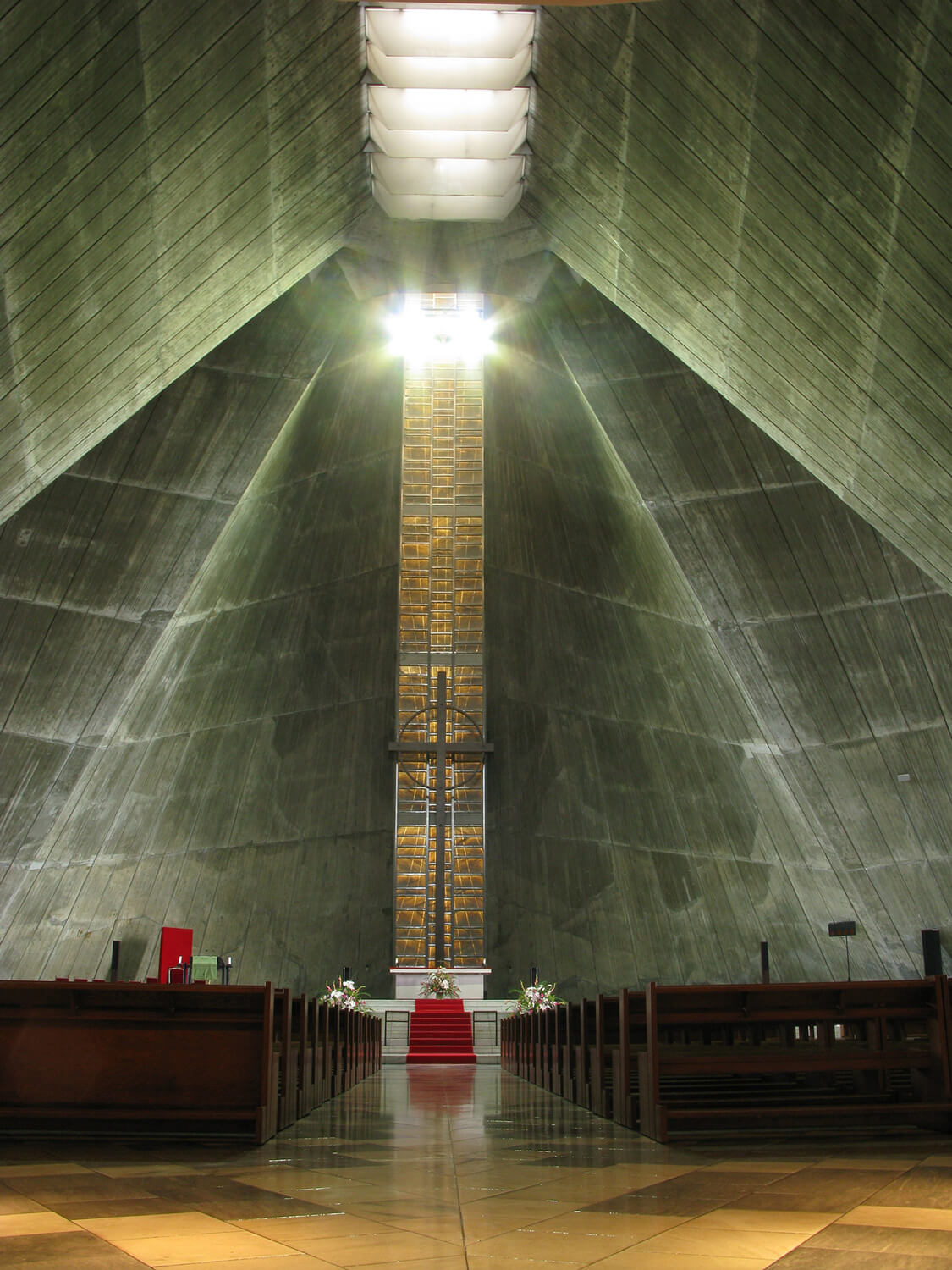 Kenzo Tange (architect); Yoshikatsu Tsuboi (engineer) - ‘Saint Mary’s Cathedral Tokyo (Interior view)’. Completed 1964 © Wikimedia Commons