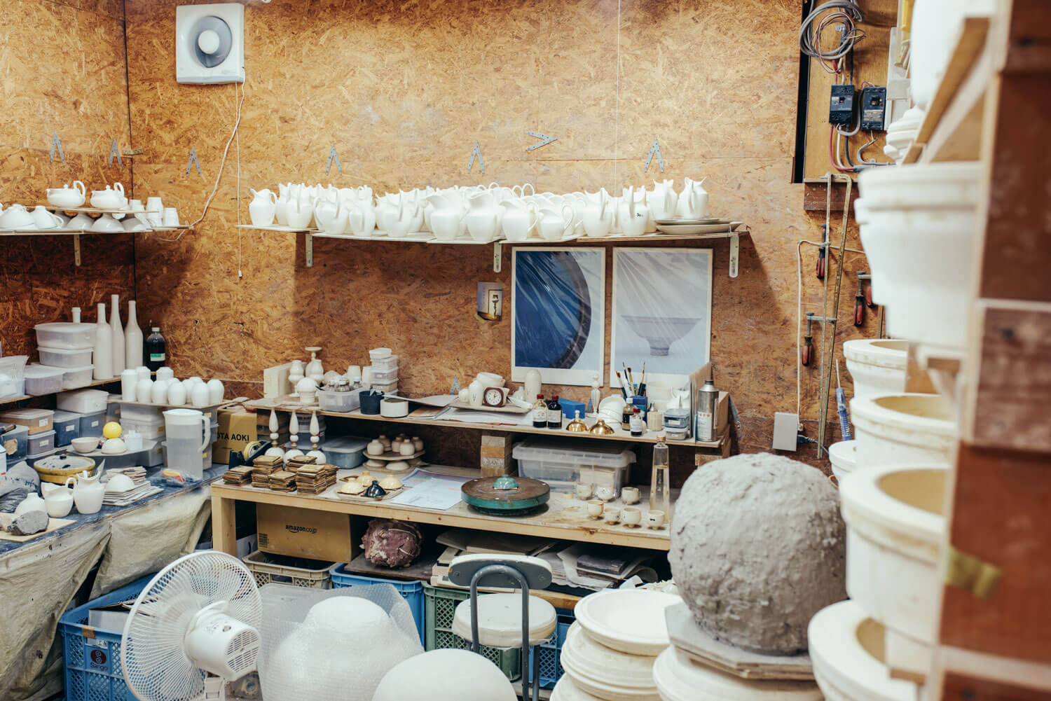 ‘Fourteen years have passed since I made my first test piece. By now, I must have made more than a hundred thousand. Whether using earthenware, porcelain, or earthenware with a high iron content, the preparation and fabrication of every piece is never identical, even if a similar glaze is applied. The thickness and composition of the glaze depend on minutely accurate measurements, and this is why the preparation of test pieces cannot be delegated. Truth is, while it’s not something I’m overly-excited about, I still personally do much of the work in advance myself’, Aoki explains with a smile.