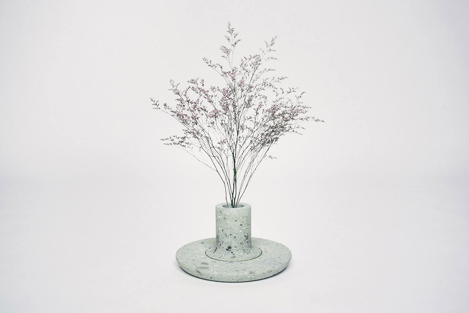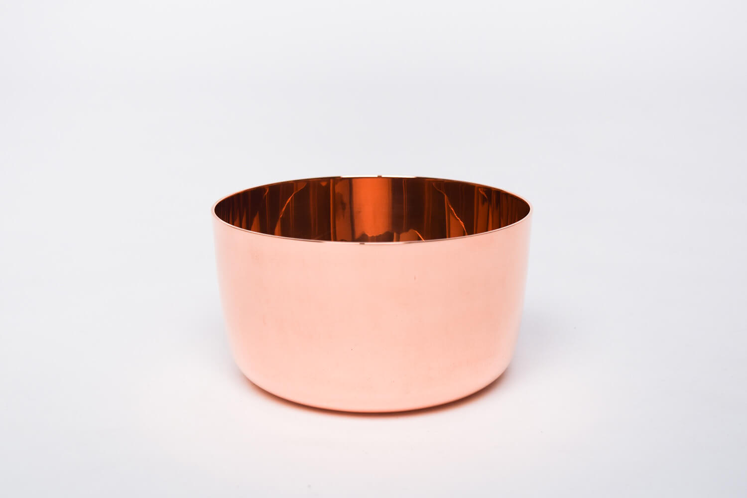 The copper dishware has been hammered and polished by hand, while the vase and candle holder are both made from blue-coloured stone. ‘Having a vase is an easy way to bring nature into your space’, explains Gerardo Osio. ‘The candle holder, which can also be used as an incense burner, shows us that fire can bring us not only heat, but also light and fragrance’.