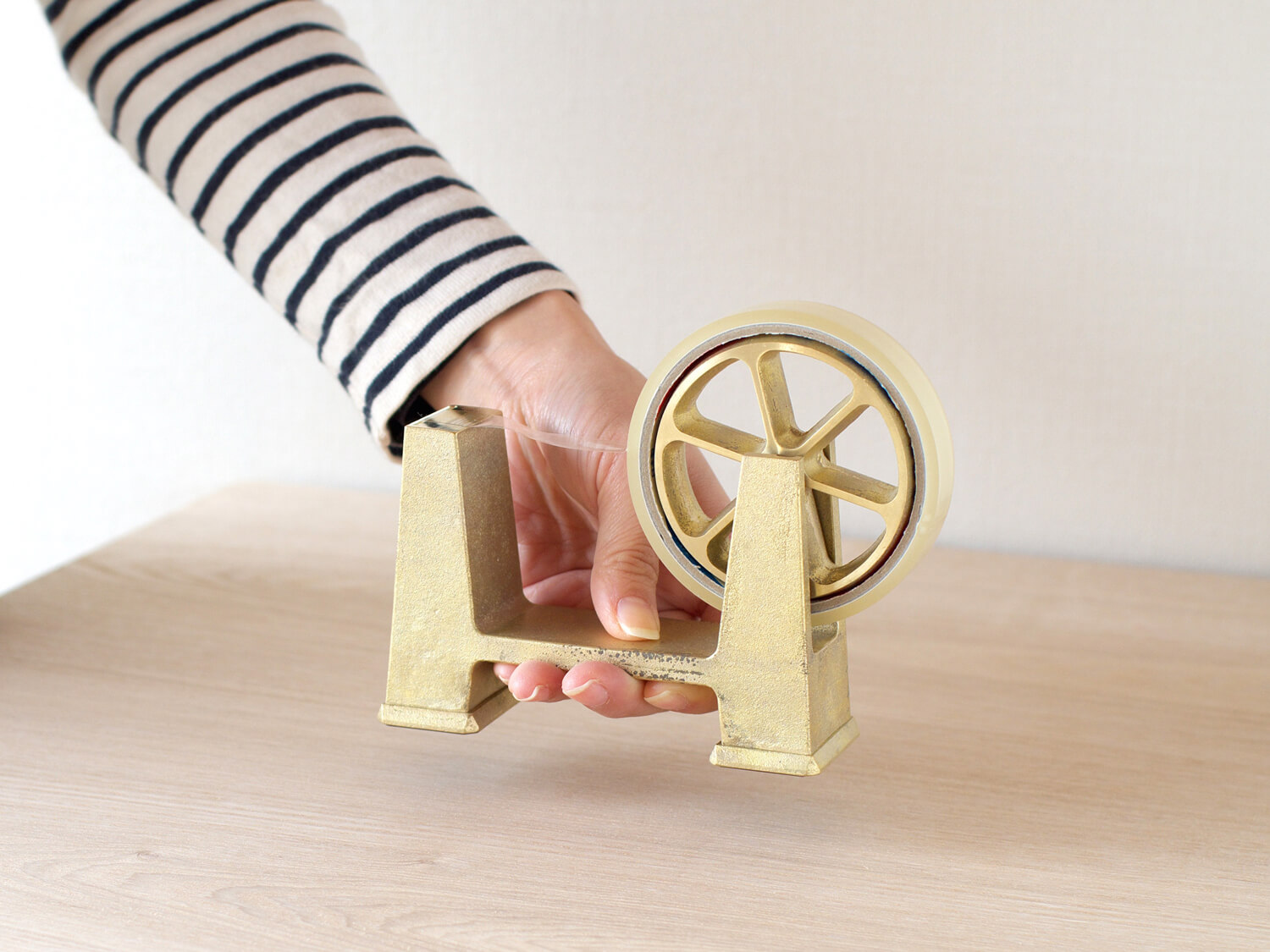 His creations include brass lampshades, brooms with handles in the shape of walking sticks, chopping boards with unusual shapes and impeccably designed sellotape dispensers, all of which stand out not only for their aesthetic value and functionality, but equally for their apparent sturdiness.