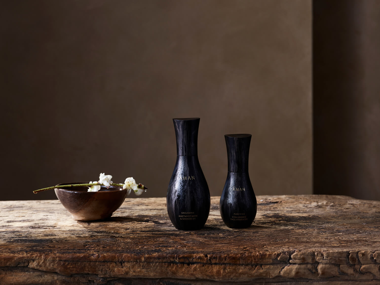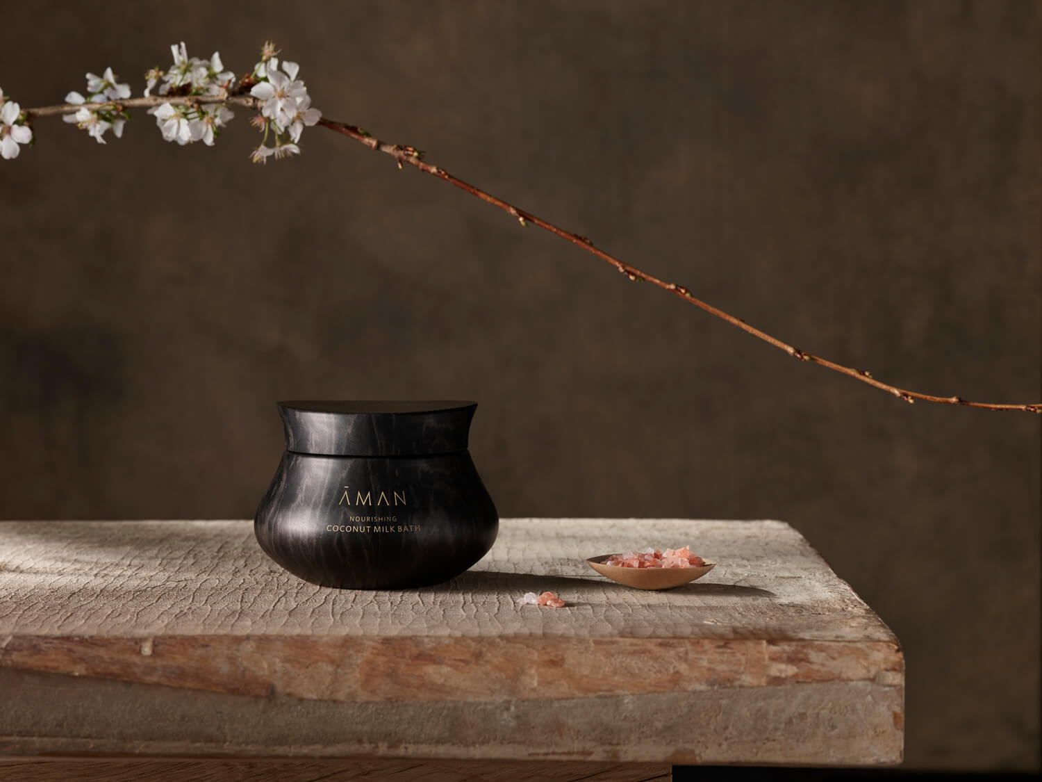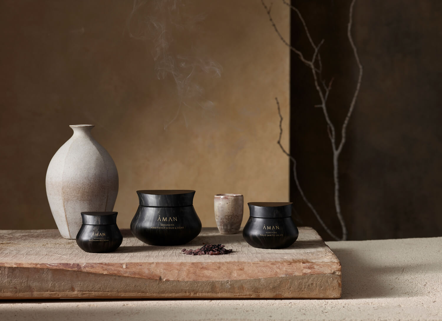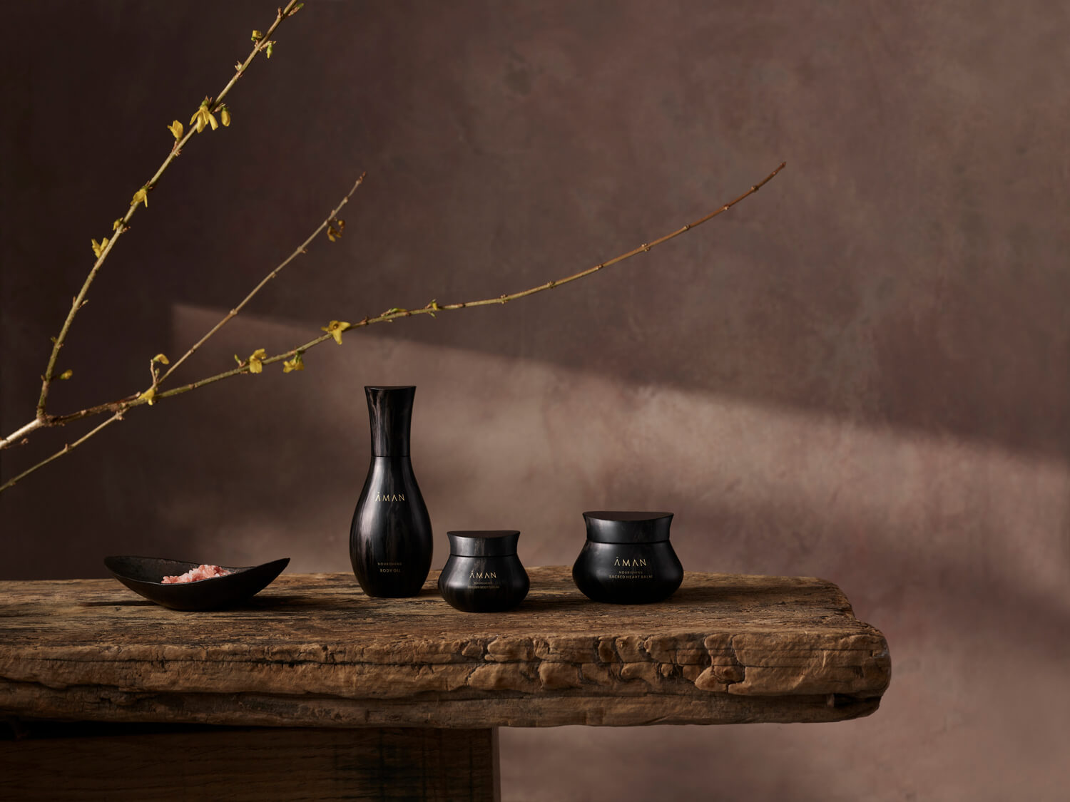 The contents are equally luxurious: the products, scented with sandalwood, are made in Britain and are plant-based—they contain Bhutanese sea buckthorn, Balinese vetiver, and Moroccan argan. These are gathered in small quantities from the various Aman sites around the world.