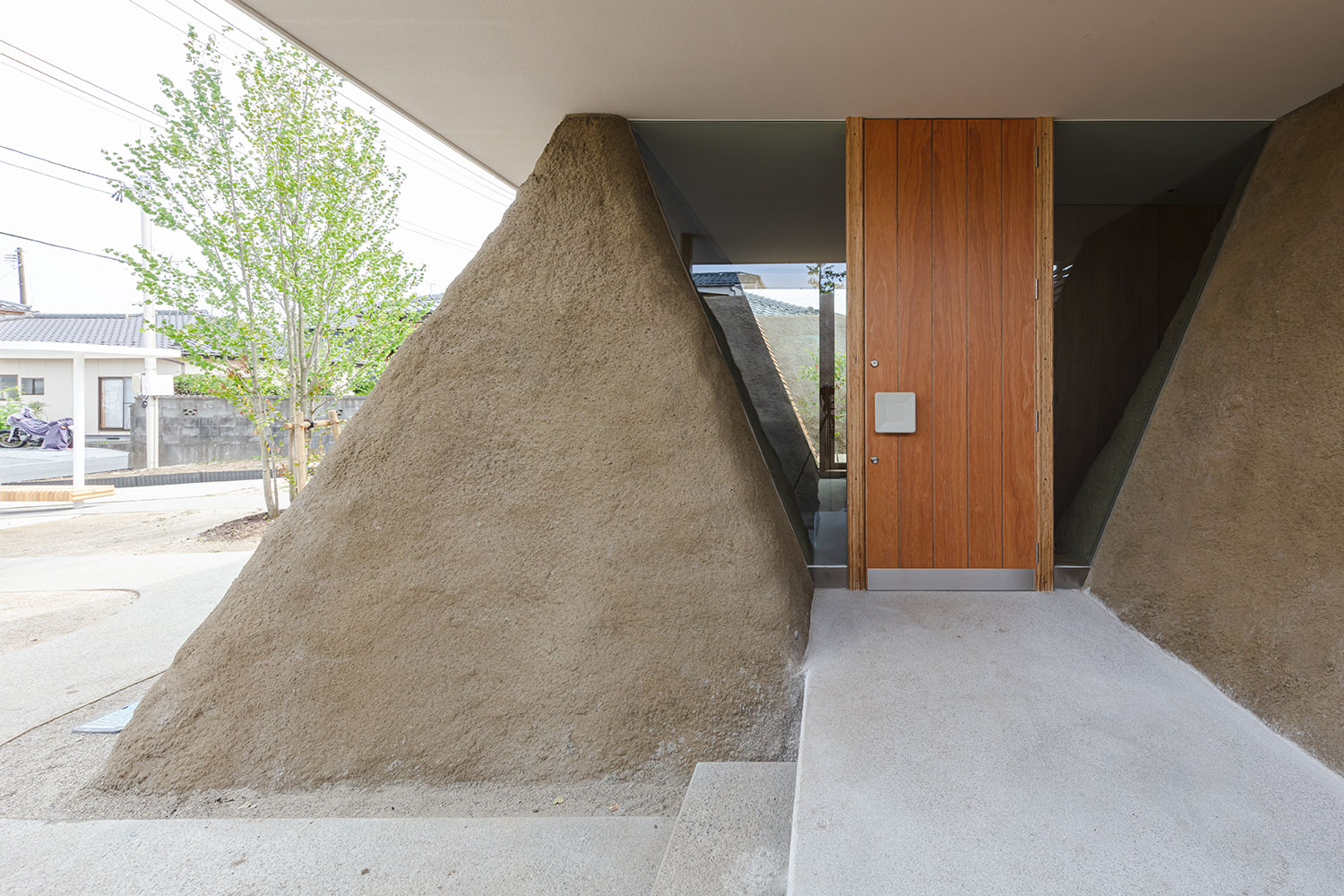 And so, Soil House was born, a residence covering a surface area of 145 square metres with a wooden structure and supported here and there by large cones made from earth. ‘Over the course of this project, we discovered that getting rid of the excess earth would be a lot more expensive than we had estimated. Thus, we drew inspiration from a childhood memory of playing with sand and modified our plan, deciding to use the earth as a construction material rather than getting rid of it’, the architectural firm explains. The earth was therefore incorporated into the building by being pulverised onto structures made from expanded polystyrene.