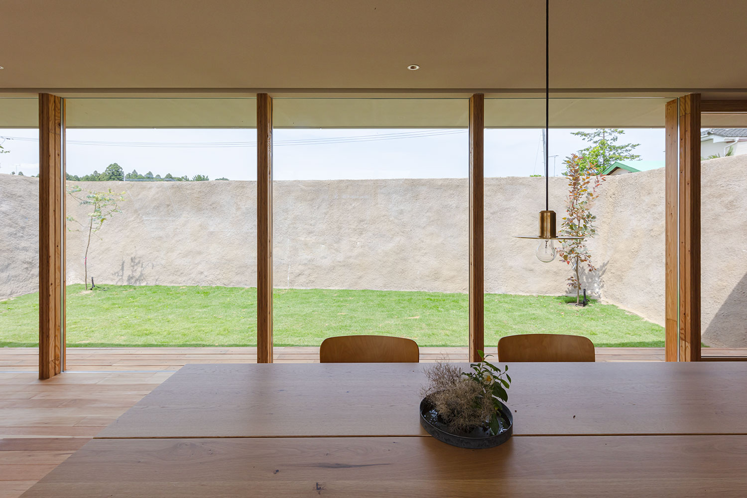 Built in 2019 in the city of Minamisoma in Fukushima Prefecture, the house fulfilled its future owners’ wish: namely to retain a connection with nature. They were among the victims of the 2011 earthquake and, after being forced to move into temporary housing and live apart for a while, they wanted to build a house in a residential district, still in Fukushima Prefecture. The key requirement was for them to have the impression of being close to nature, as their previous house had been located in an area that was particularly rich in plant life.