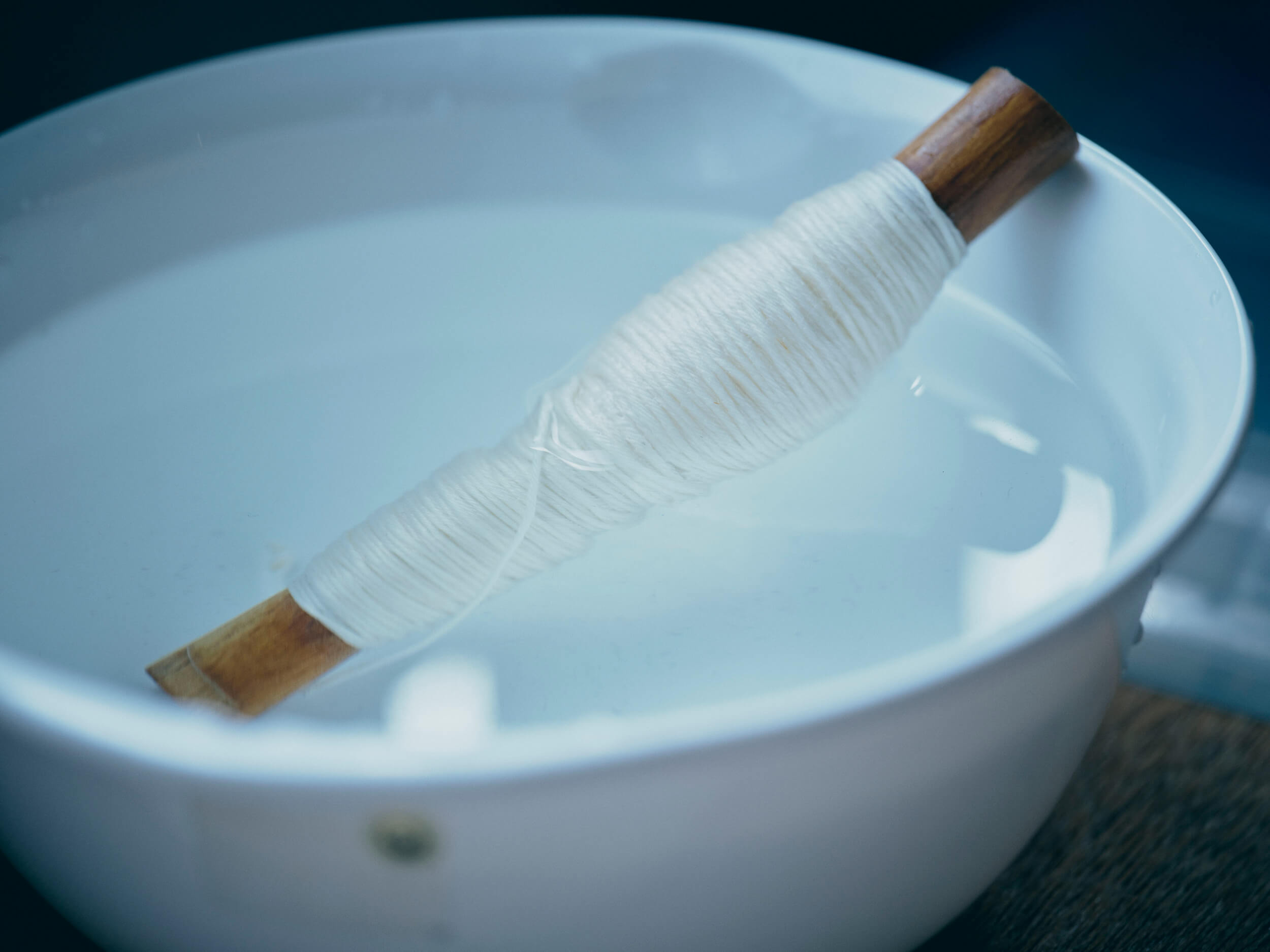 To increase durability, the thread is soaked in water, as dry thread is more prone to breaking.
