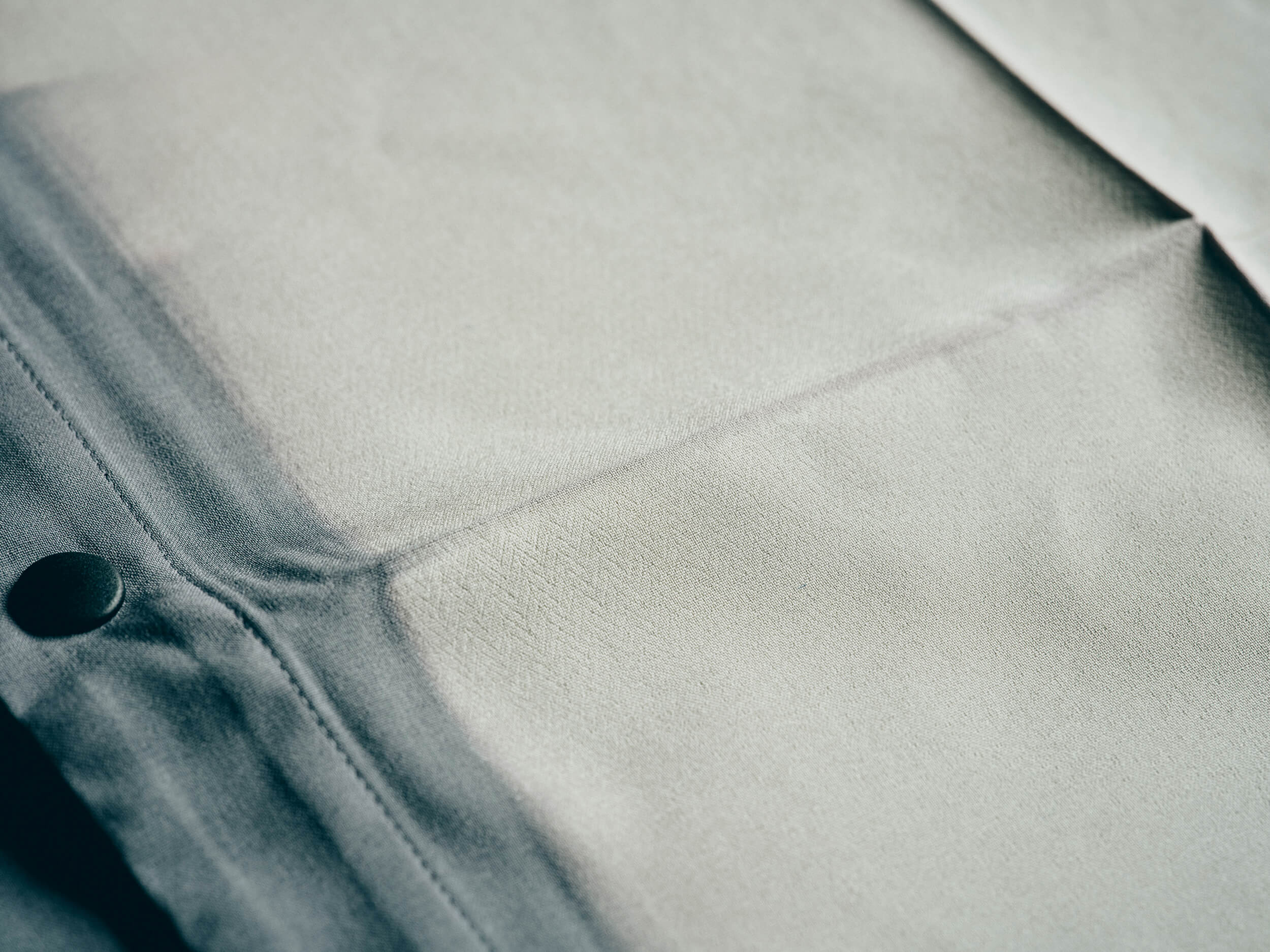The Itajime Shirt is wrinkle-resistant, washable, and available in light gray, beige, and blue, as shown in the photo. Its delicate craftsmanship and practical design make it a standout piece.