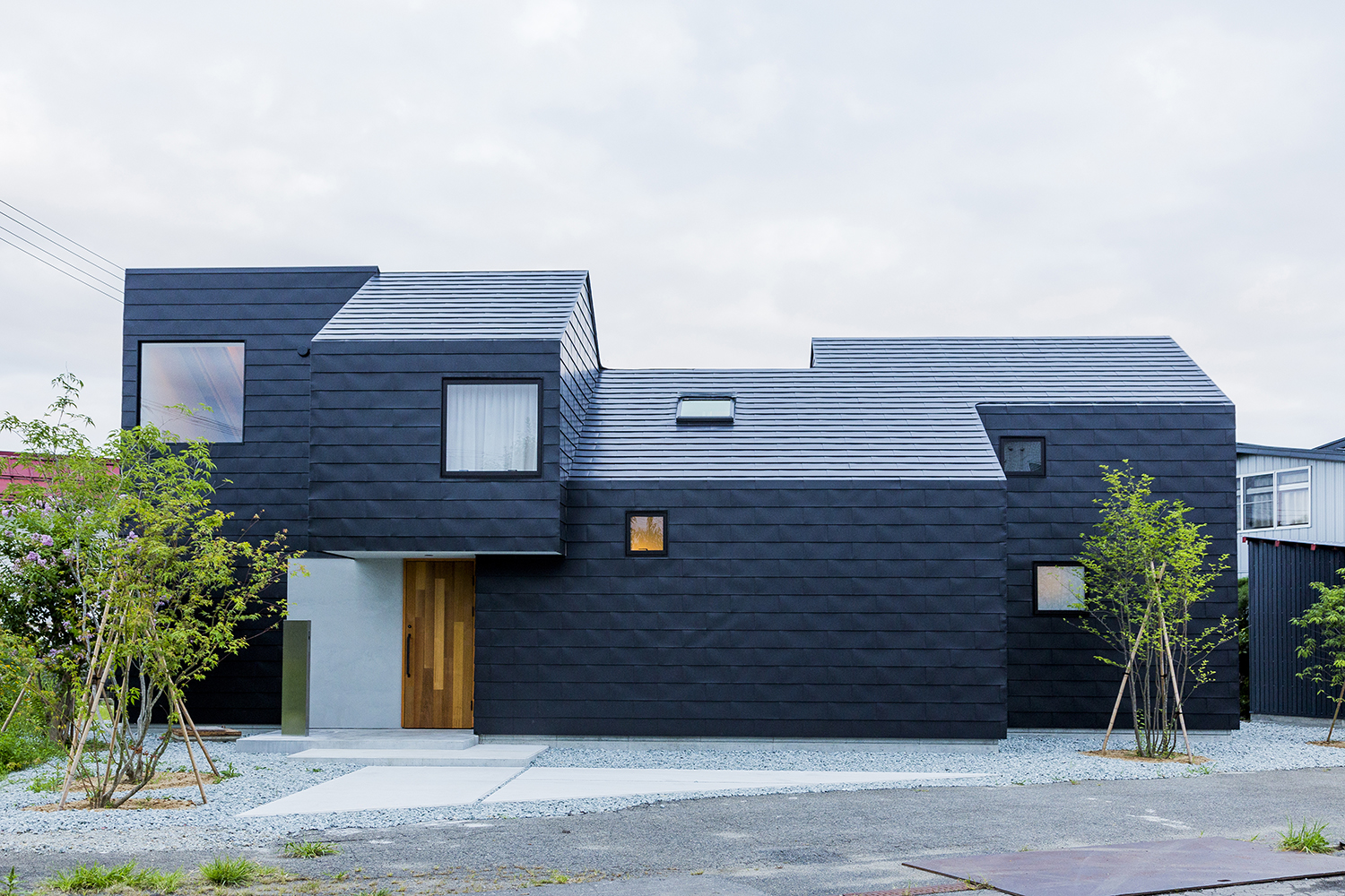Triangle Layer House is covered in black panels made from galvalume, a zinc-aluminium alloy, used in the region to protect buildings against the snow. The architect believes this neutral tone prevents the construction from standing out too much in the city centre. Another architectural specificity of this house with sharp angles is that each angled wall has a large opening onto the outside, allowing the residents to live in harmony with nature.