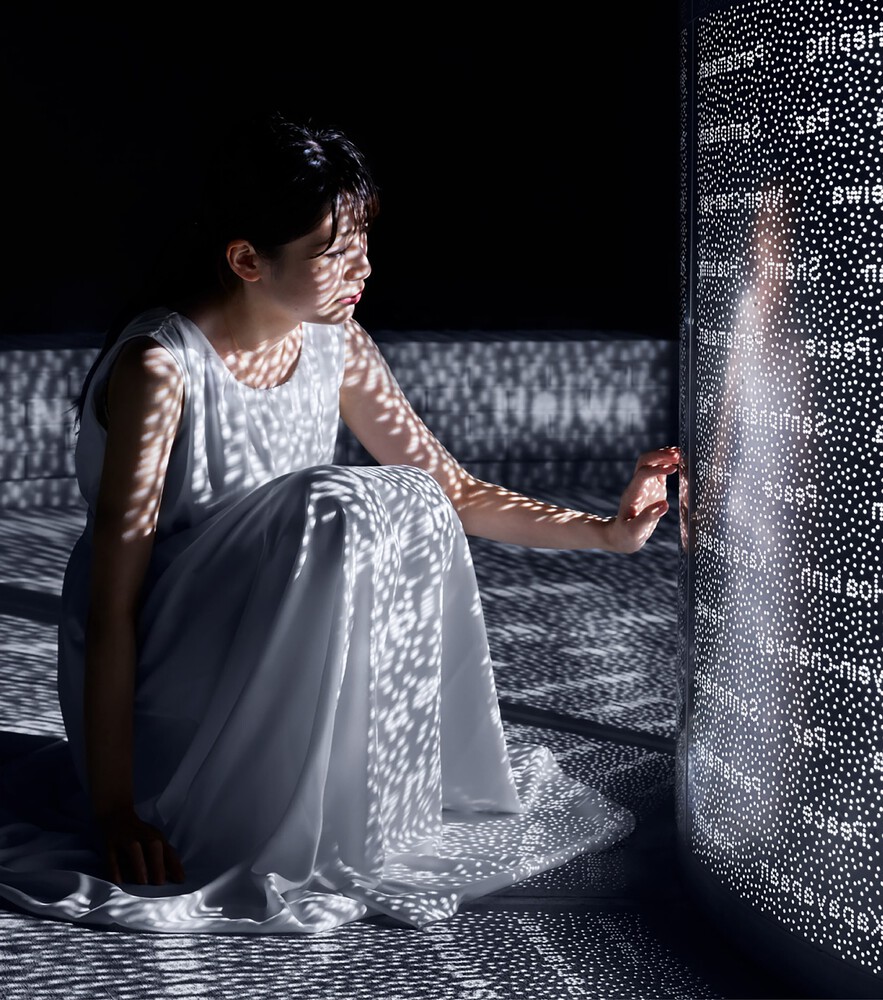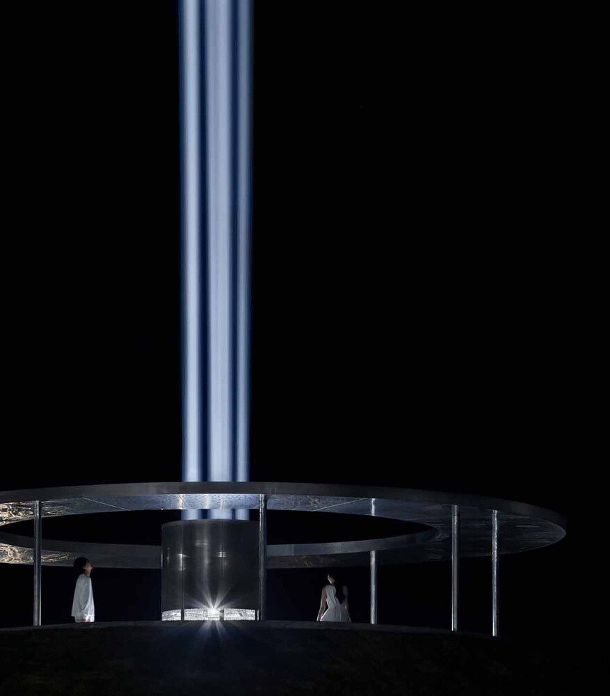For Hakuten, this is more than just a monument; it is about the creation of a new landscape. Thus, the edifice illustrates the desire for lasting peace through the ceiling and central pillar, which are decorated with modest circles. These shapes were hand-drawn by the residents of Yokosuka, then punched with a laser, along with the word ‘peace’, translated into several languages. The beam of light causes these different elements to be reflected on the ground and to blend with the light from the houses situated at the bottom of the hill. The turret aims to bring people together, but above all to convey the importance of connections between humans.