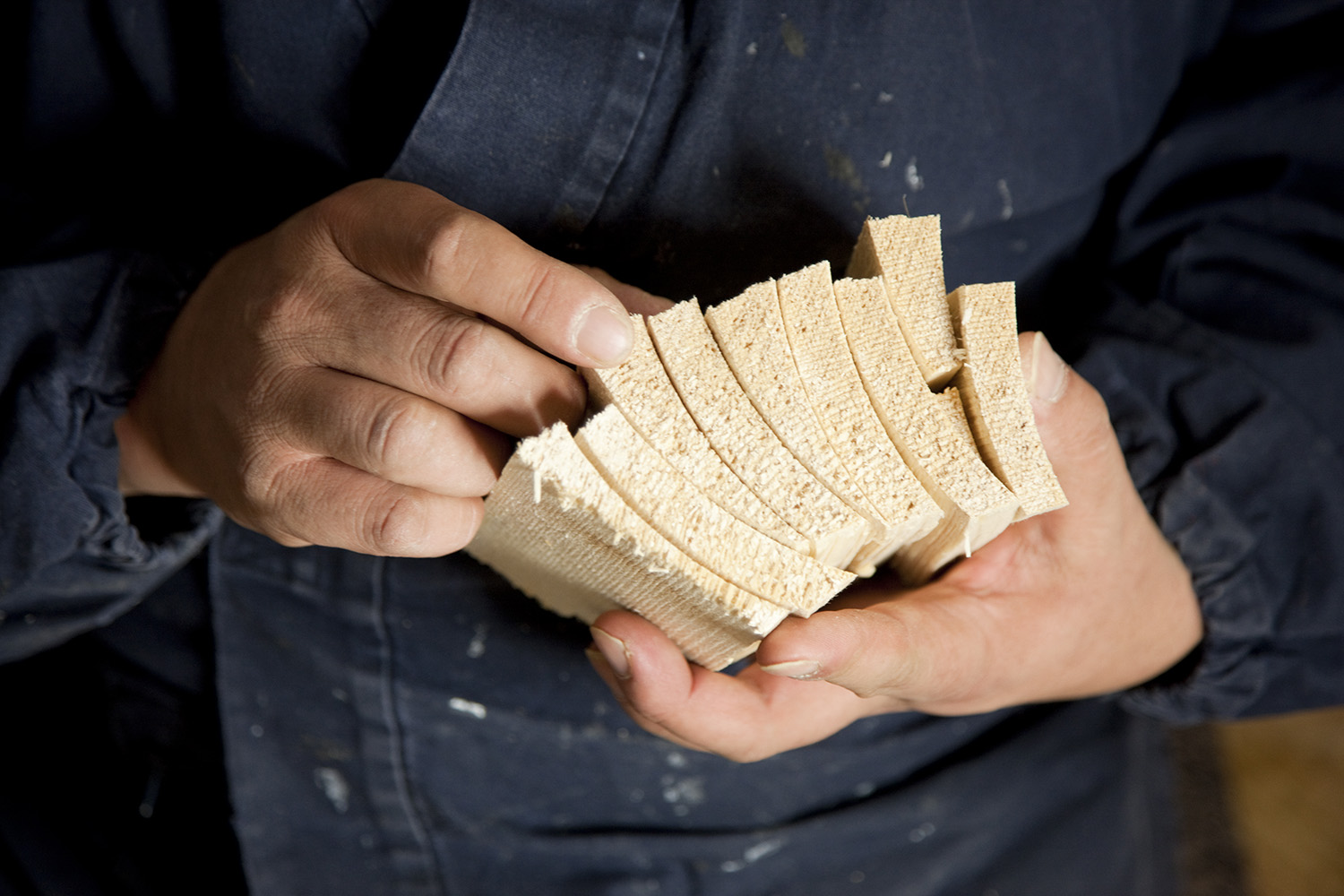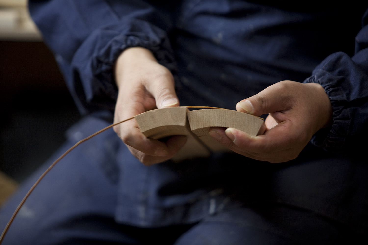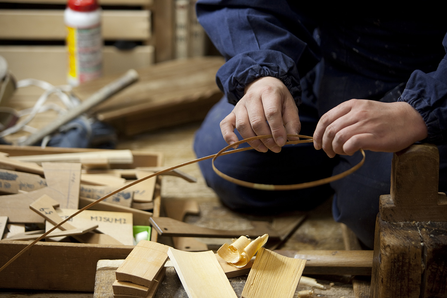 This is where he reinvents the design of ki-oke, transforming them into champagne buckets among other things. These pieces are made from Japanese cypress (bishu-hinoki) and stone pine (koya-maki). The artisan works with the wood using techniques inherited from his father: after drying the wood for several months, Shuji Nakagawa joins the slats using bamboo canes, before securing them with a hoop.
