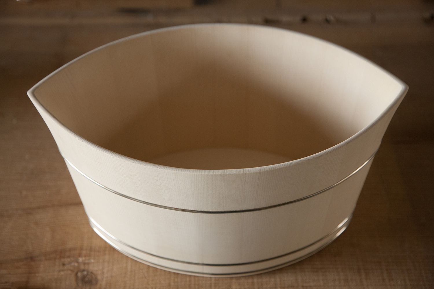 Shuji Nakagawa, son of the famed Kiyotsugu Nakagawa, recognised as a living national treasure in 2001, is perpetuating the centuries-old tradition of ki-oke, wooden buckets that have been made by hand in Japan for over 700 years. Initially created for the bathing ritual or for storing rice and miso, the company Nakagawa Mokkougei seeks to expand their number of uses so that these artisanal pieces, made using techniques that have been passed only from father to son, are never forgotten.