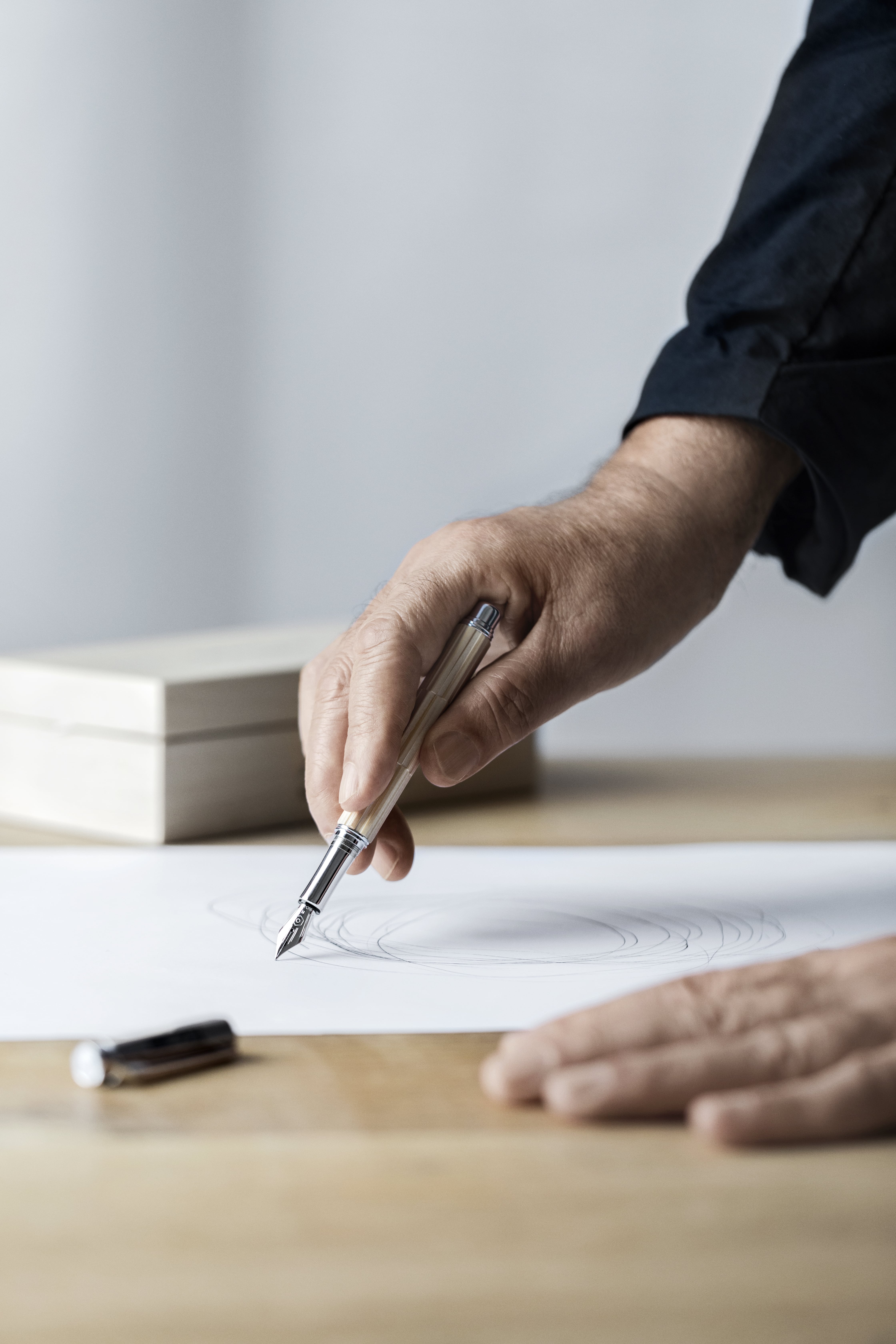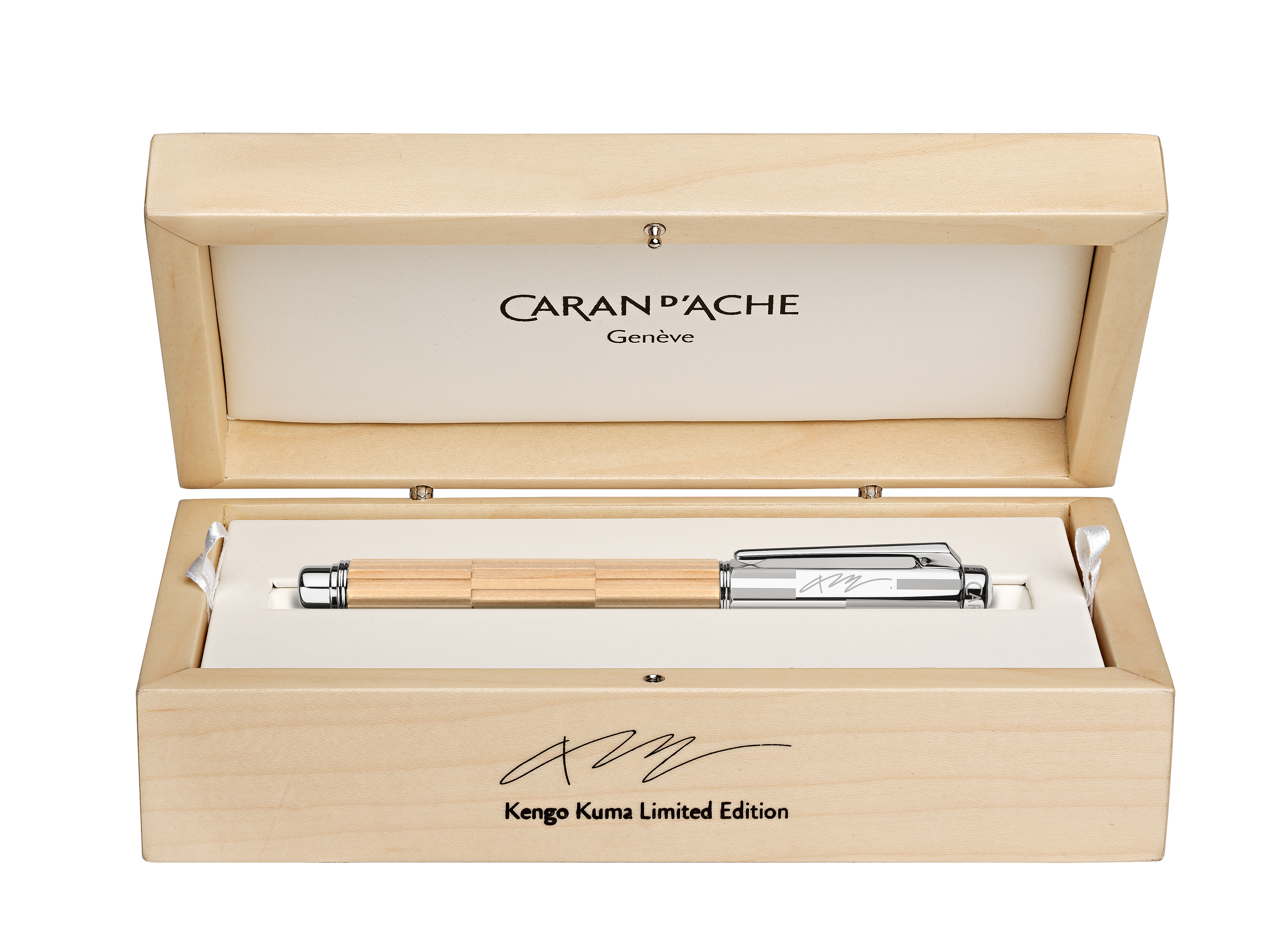 The architect Kengo Kuma has collaborated with Caran d'Ache to design a pen that utilises the texture of Japanese cypress.