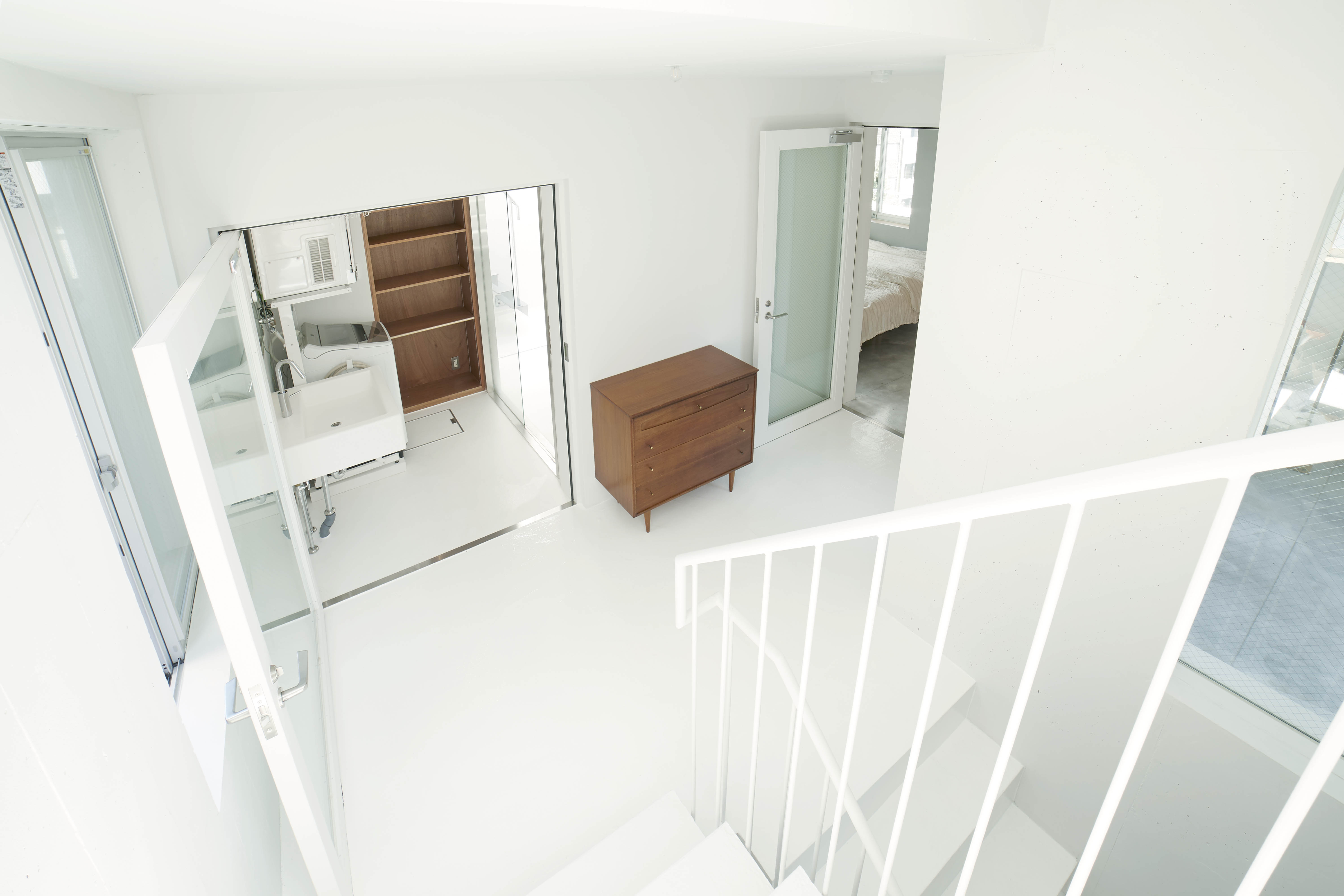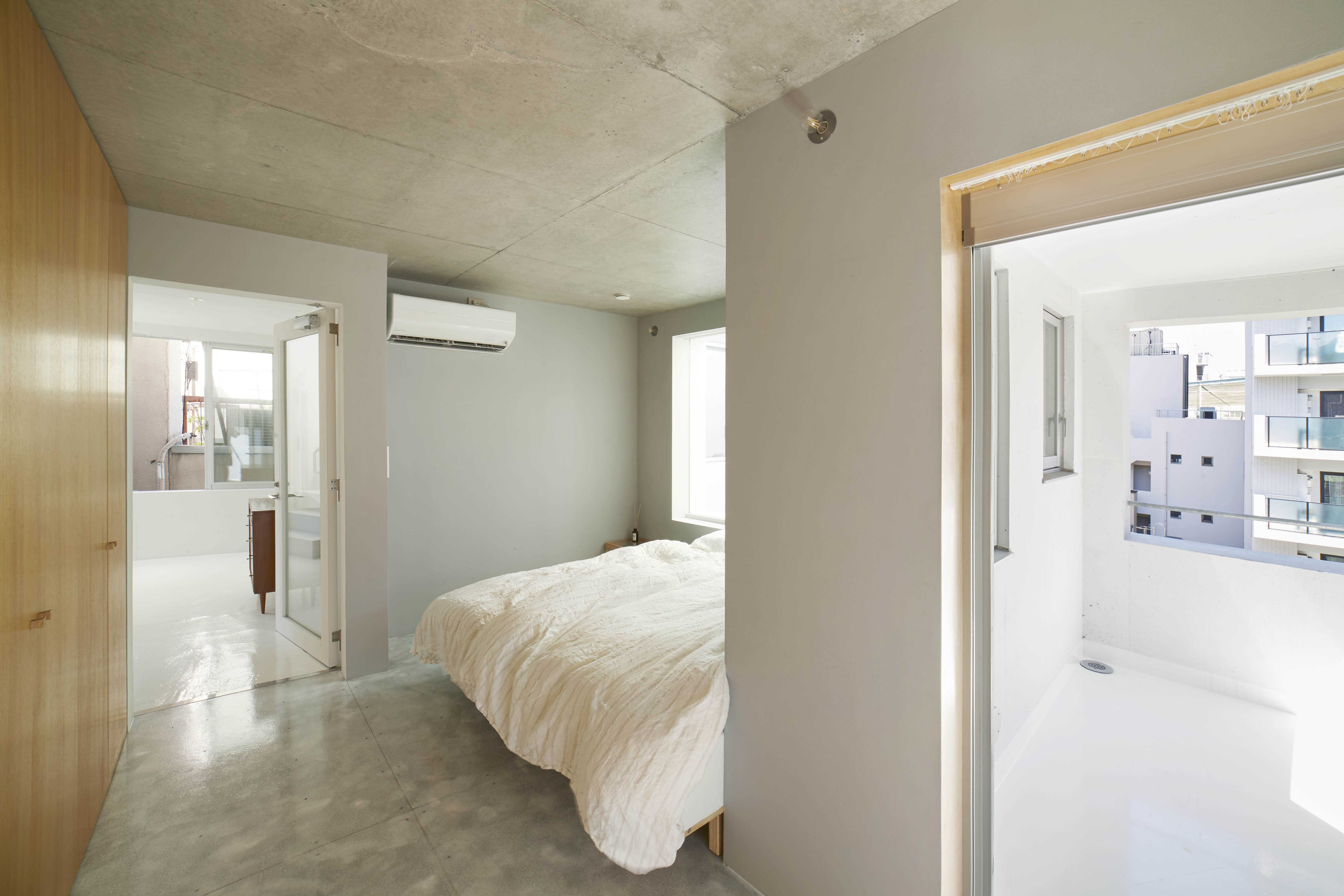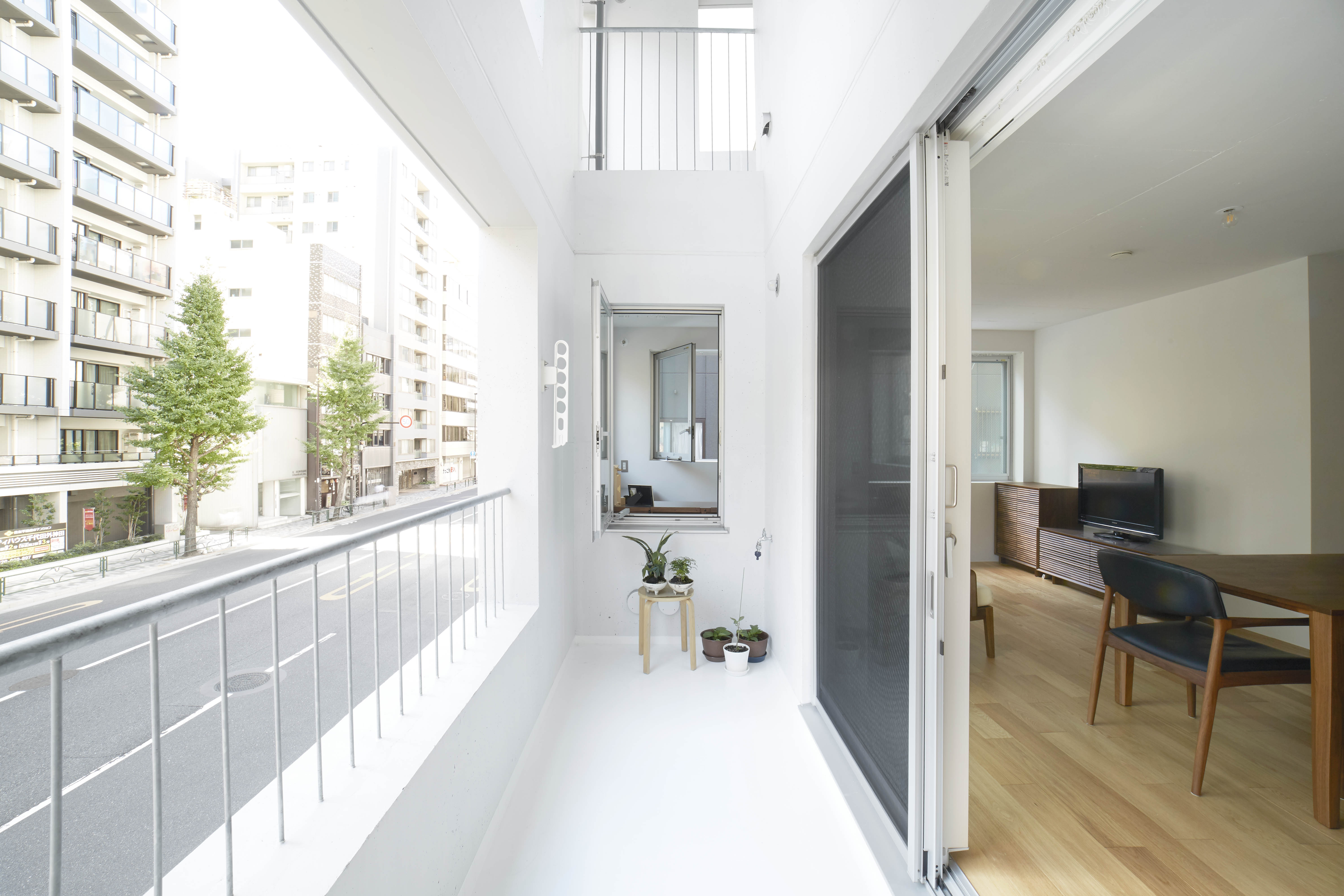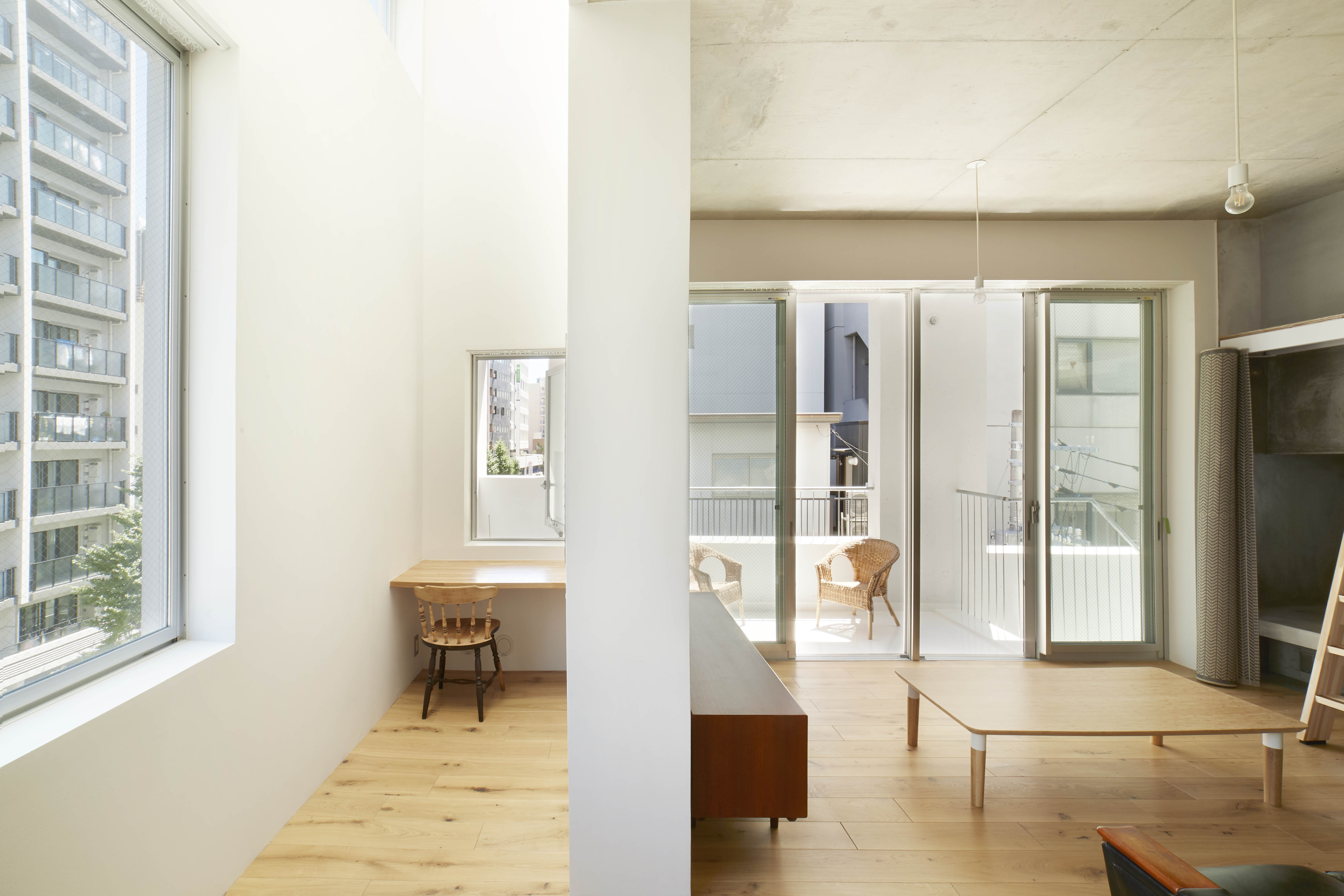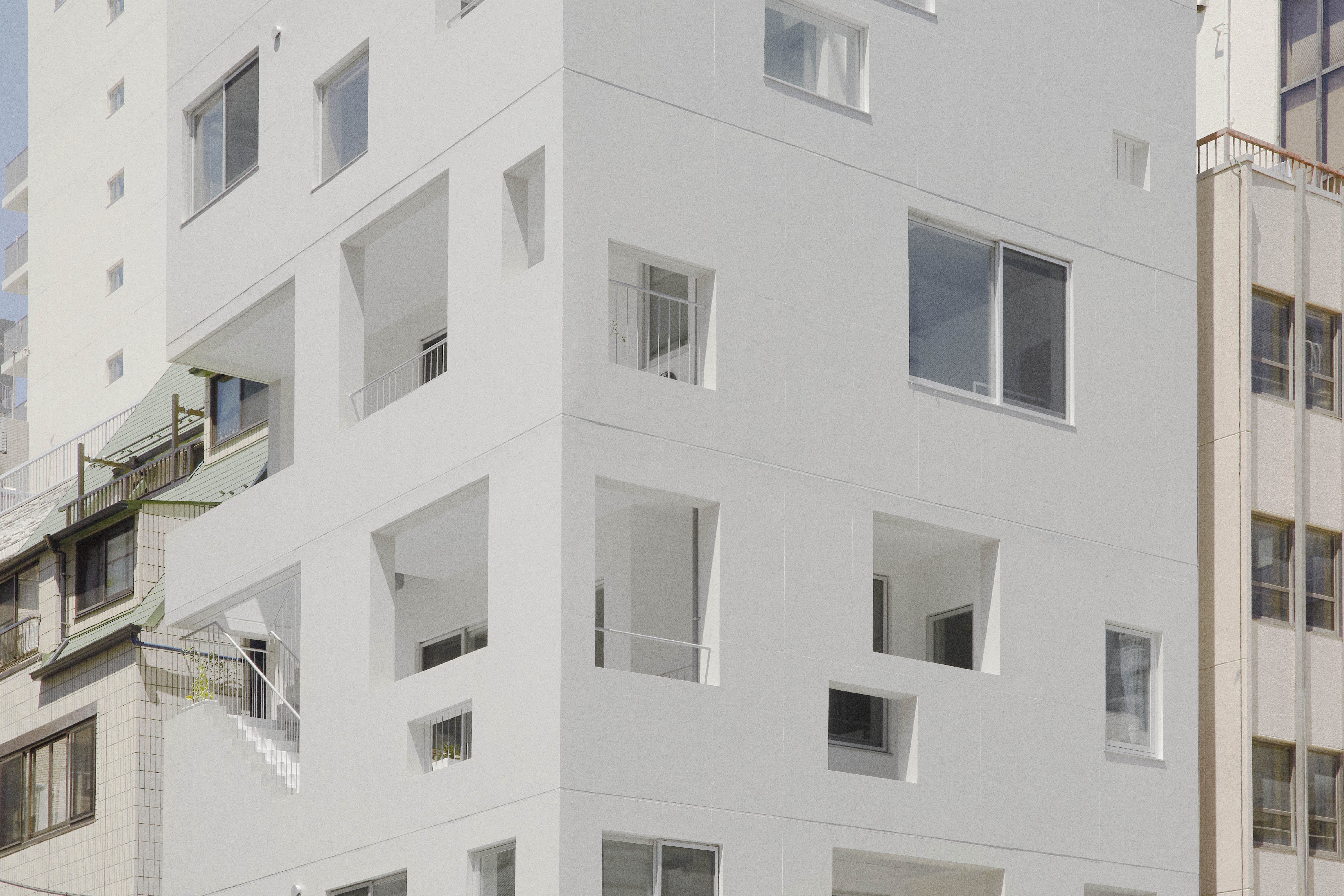 ‘We wanted to create a house where the wind, light, and scenery get inside and that feels good to live in’, explain Ryosuke Takei and Sho Ohta, the two architects in charge of the project. To achieve this, the building has numerous openings onto the outside: windows of various sizes, open terraces, intended to act as shared areas, and balconies.