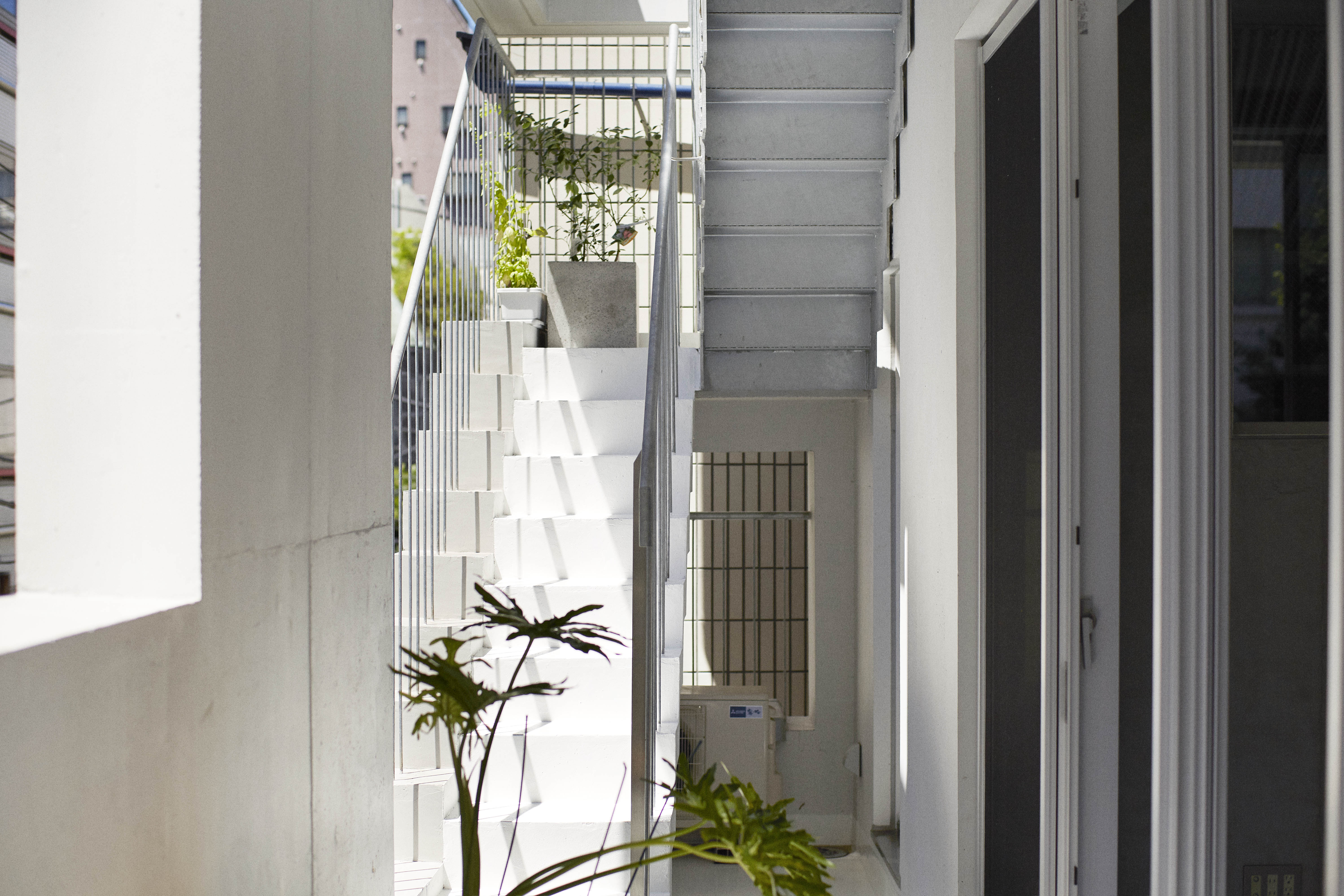 In the heart of Tokyo lies Yushima House, a tall, rectangular-shaped building pierced with multiple windows in numerous places, with several terraces found on the different floors, and external staircases winding around the outside. The house has one special feature: it was designed by the firm OSTR as a collective dwelling, to be inhabited by two families and where private spaces and shared living areas come together.