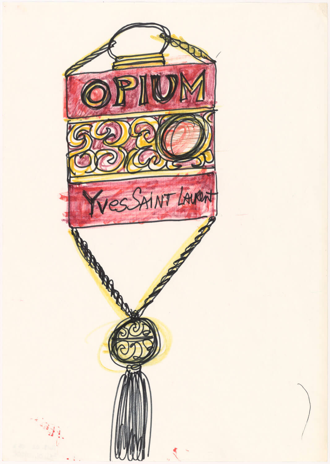 ‘Yves Saint Laurent, Research sketch for the launch of Opium, circa 1977’. Musée Yves Saint Laurent Paris
