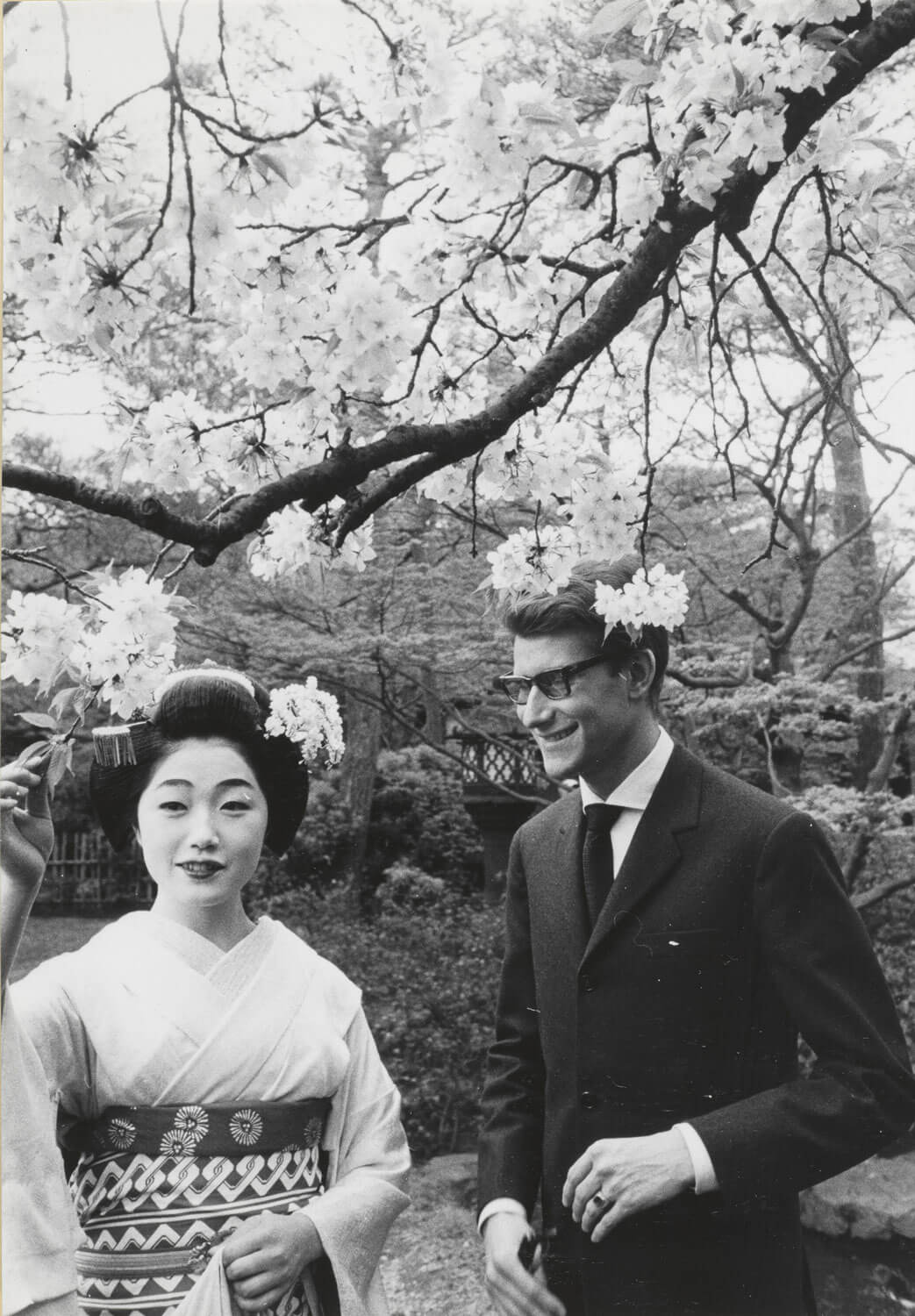 ‘Yves Saint Laurent and a courtesan wearing traditional garments during his first trip to Kyoto, Japan, April 1963’ © Rights reserved