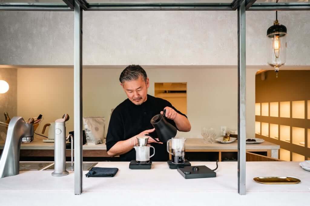 Takeshi Nishida traveled from Wakayama to serve hand-drip coffee at the opening reception.