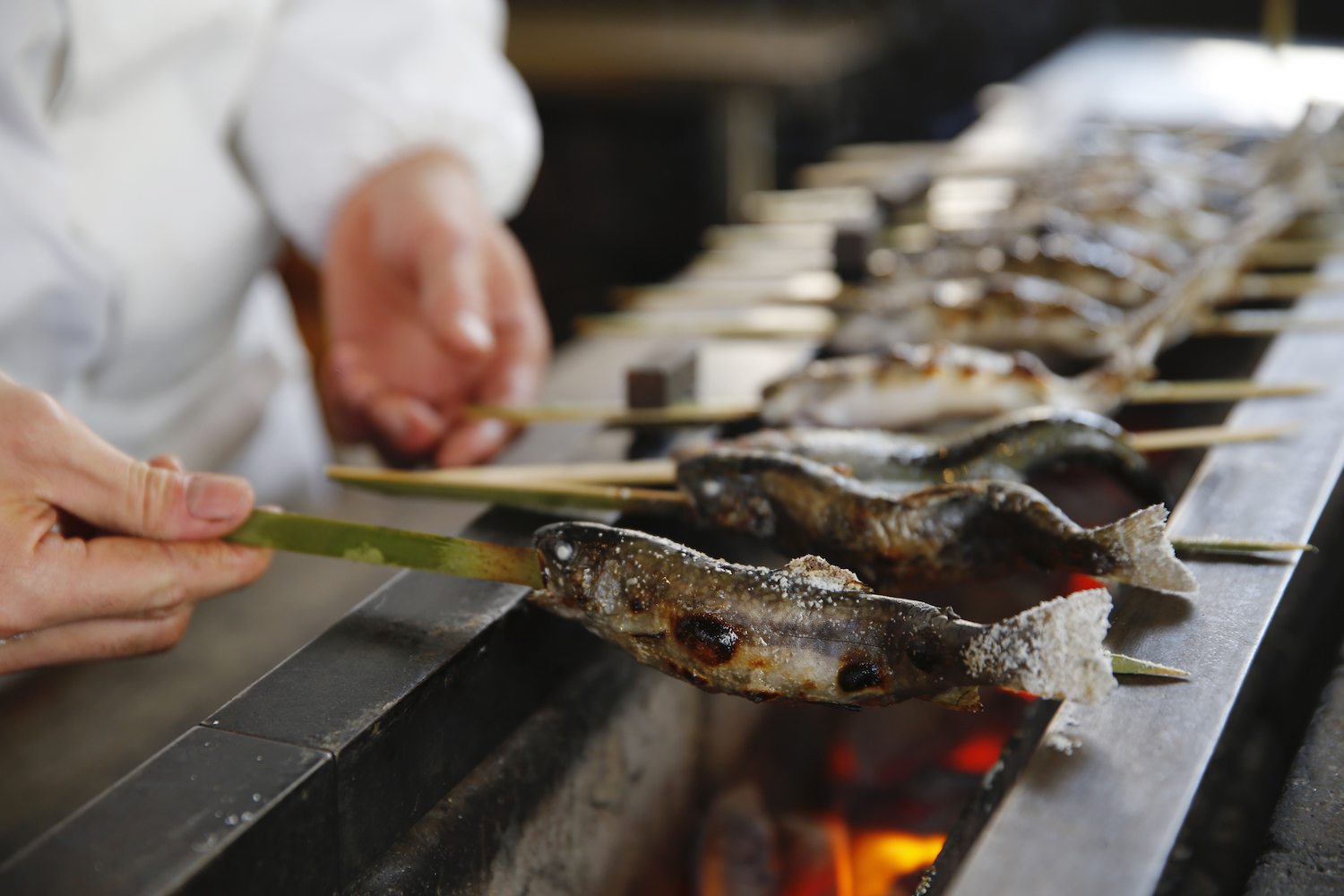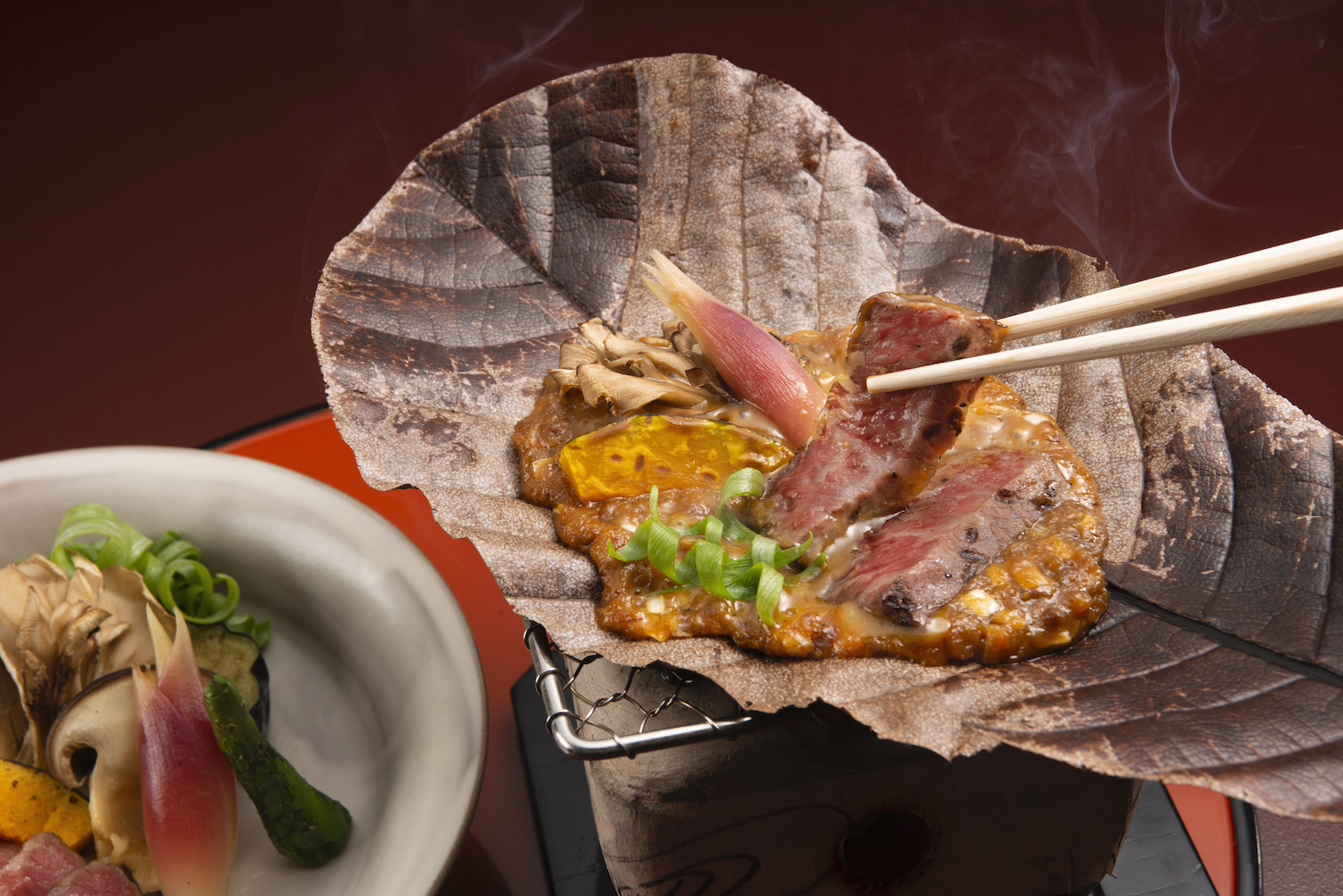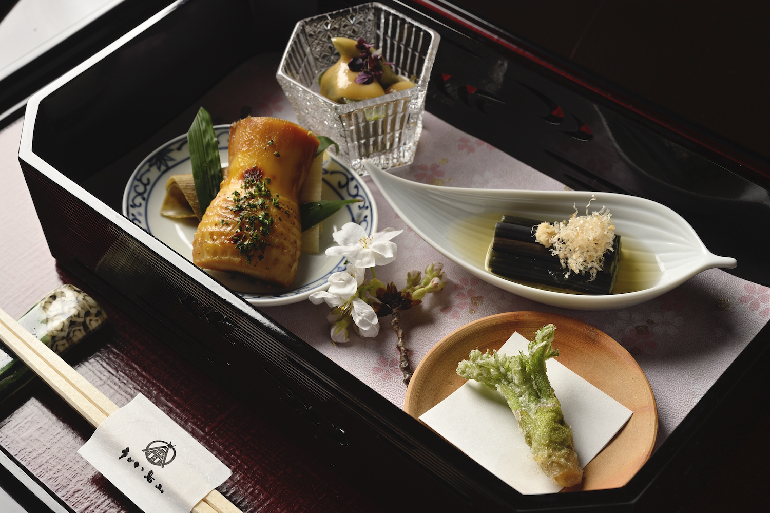 With the outdoor scenery being a key element of the dining experience, dishes are designed to match the season. This is particularly noticeable at Ukai Toriyama’s neighbouring partner restaurant, Ukai Chikutei. Here, in spring, bamboo shoots take centre stage, whereas in the early summer, the leaves of the magnolia tree are used to create the popular Hida-Takayama dish, hobayaki. The goal is to provide guests with all the blessings of the satoyama (mountain woodland), while allowing them to taste dishes from across the length and breadth of Japan.