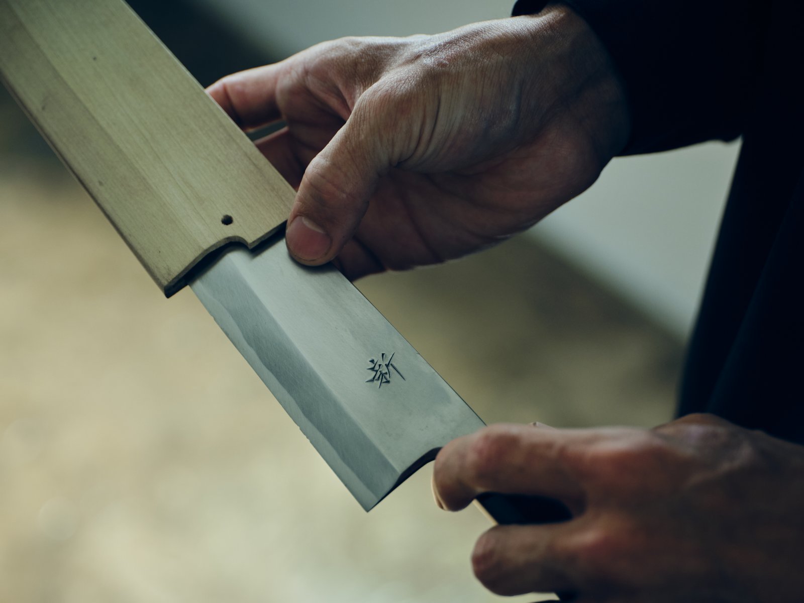 When he purchased a new knife earlier this year, he had it engraved with the name of his first child, born recently. It’s a simple ebony ‘deba’ knife. He also owns one engraved with his own name.