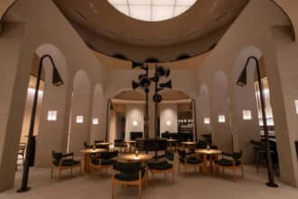 Step inside, and you’re enveloped in dusty, warm tones of pink and mint, with soft gradients that recall a Georgia O’Keeffe painting. Around 60 bottles are always on hand, from classic Pinot Noir to citrus-scented natural wines. Alongside selections from France, Germany, and other European producers, Juni also showcases bottles from Japan’s most exciting winemakers. Here, seasoned regulars and curious newcomers alike can relax into an unpretentious, welcoming space.