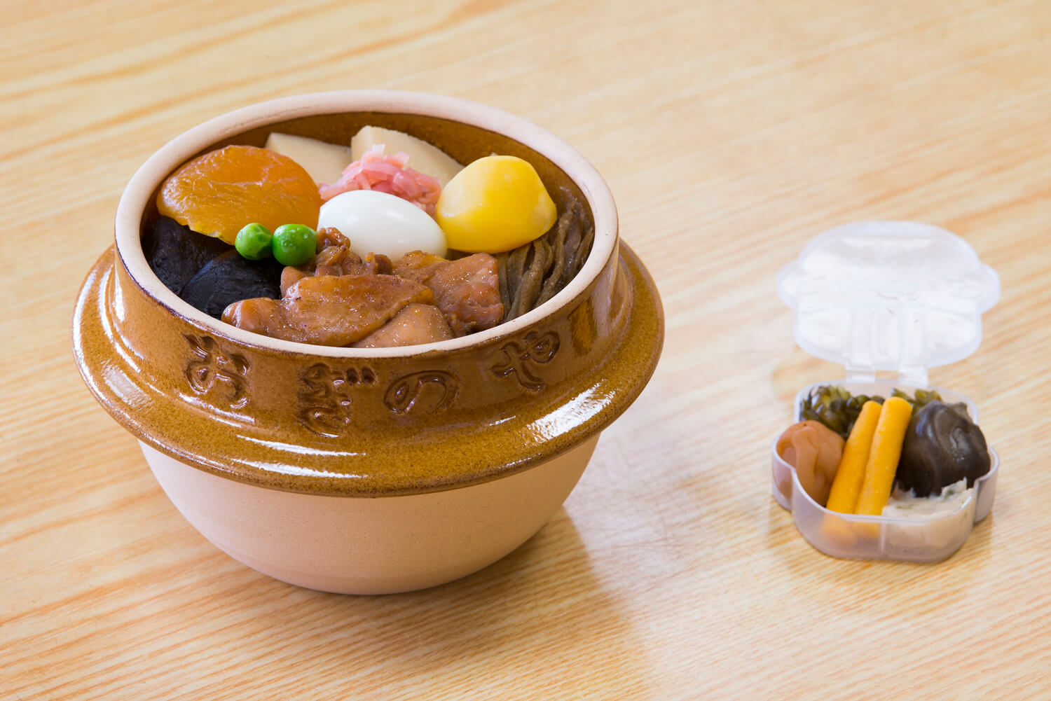 Prepared that morning from fresh products, they generally contain rice or noodles, accompanied by seasonable vegetables and some meat or fish. The contents are packaged in a wooden or plastic box, or even a ceramic pot, a speciality in Hyogo Prefecture (grouping the cities and surrounding areas of Kobe, Himeji, and Nishinomiya). Ekiben are most often served cold, but for a few years now, some prefectures have been offering options that are served hot, like Miyagi Prefecture with its Tan To bento. You pull on a string, which sets off a chemical reaction in a little pocket found under the dish and it reheats it in just five minutes.