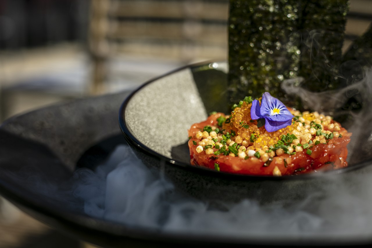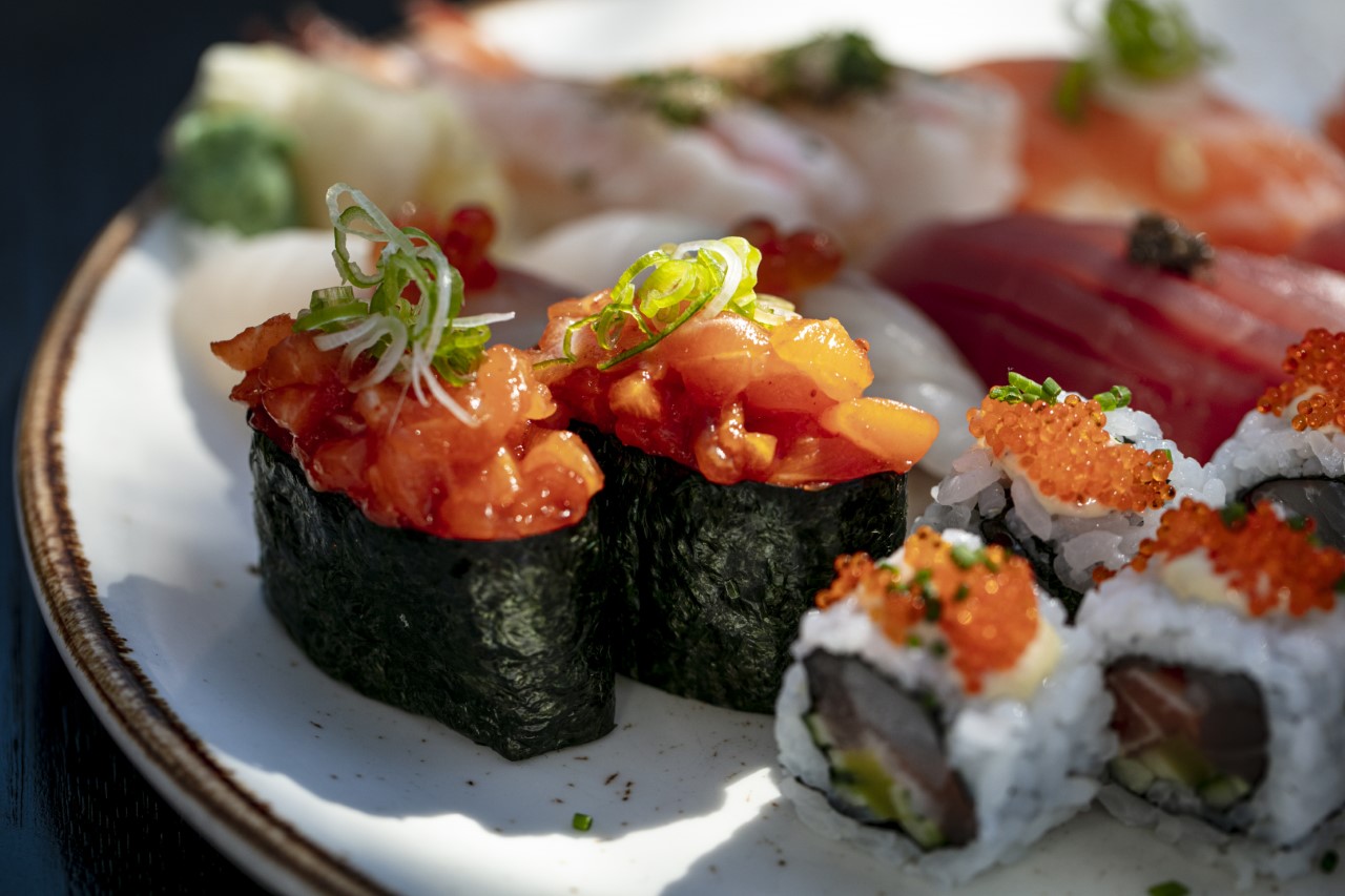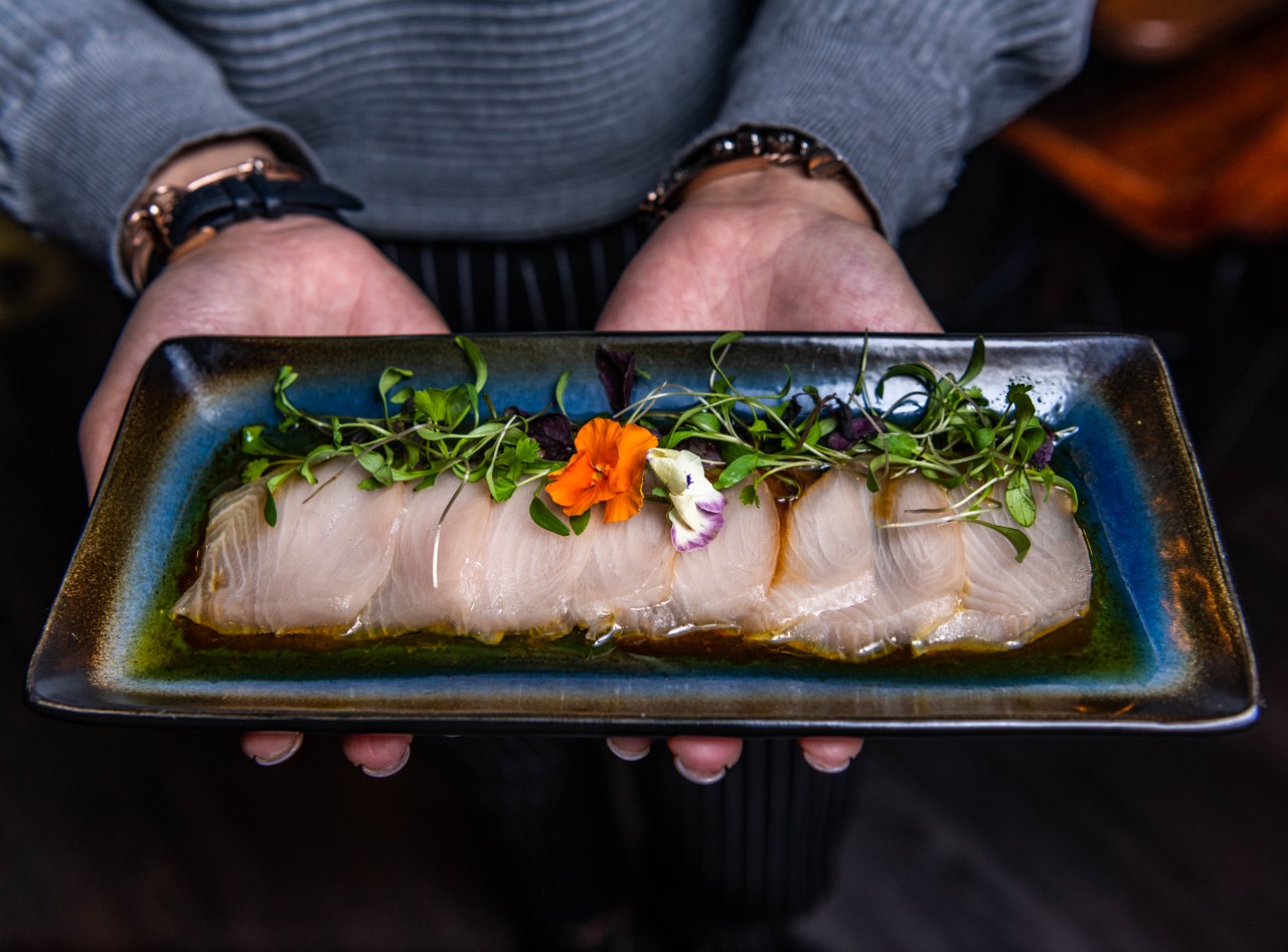 The chef is not scared by excess, as he masterfully combines salmon, tuna, sea bass, caviar, tobiko (small flying fish roe), cucumber and takuwan (pickled daikon) in his maki ‘Our Rolls’. This combination, while initially intimidating, produces an extremely fresh explosion of flavours. But the highlight of the menu is the seared butterfish tataki topped with truffle shavings, all served in a truffle ponzu sauce. It melts in the mouth and is extremely popular with the diners, even those who are new to eating raw fish.