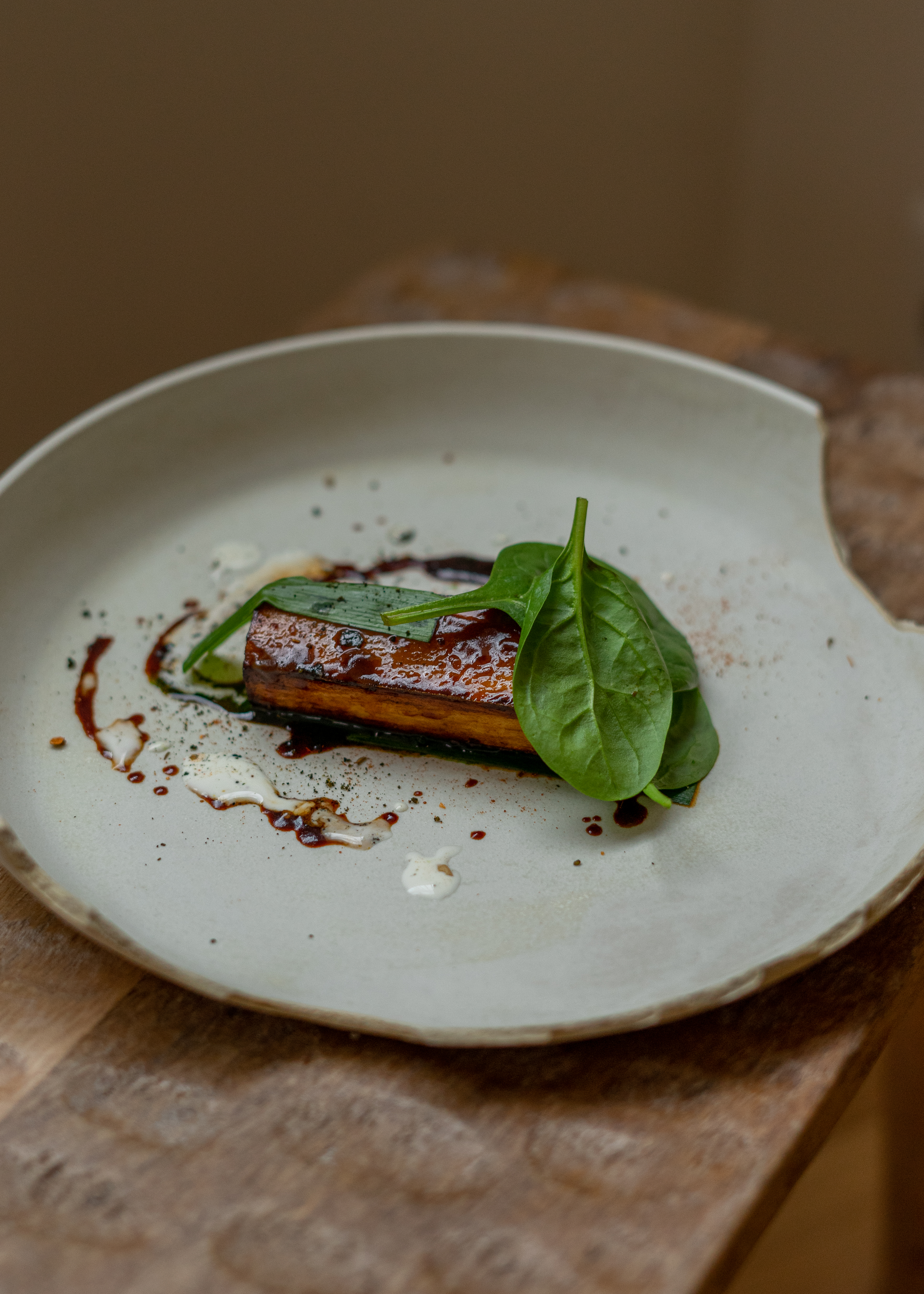 Cassava glazed with soy sauce, spinach like in a Saka-Saka, coconut and ginger © Quentin Tourbez