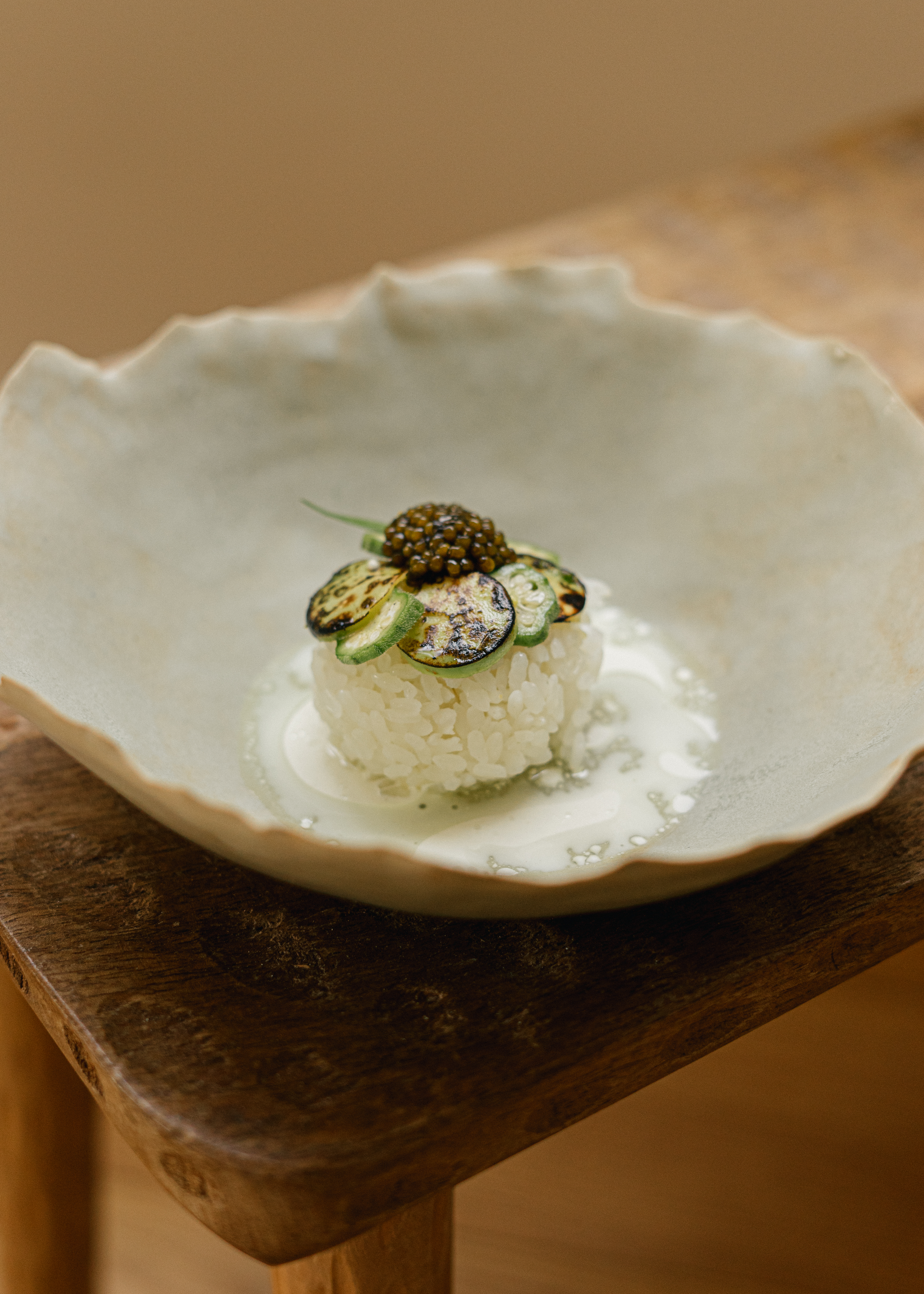 Japanese rice, avocado, gumbo, avocado oil and caviar © Quentin Tourbez