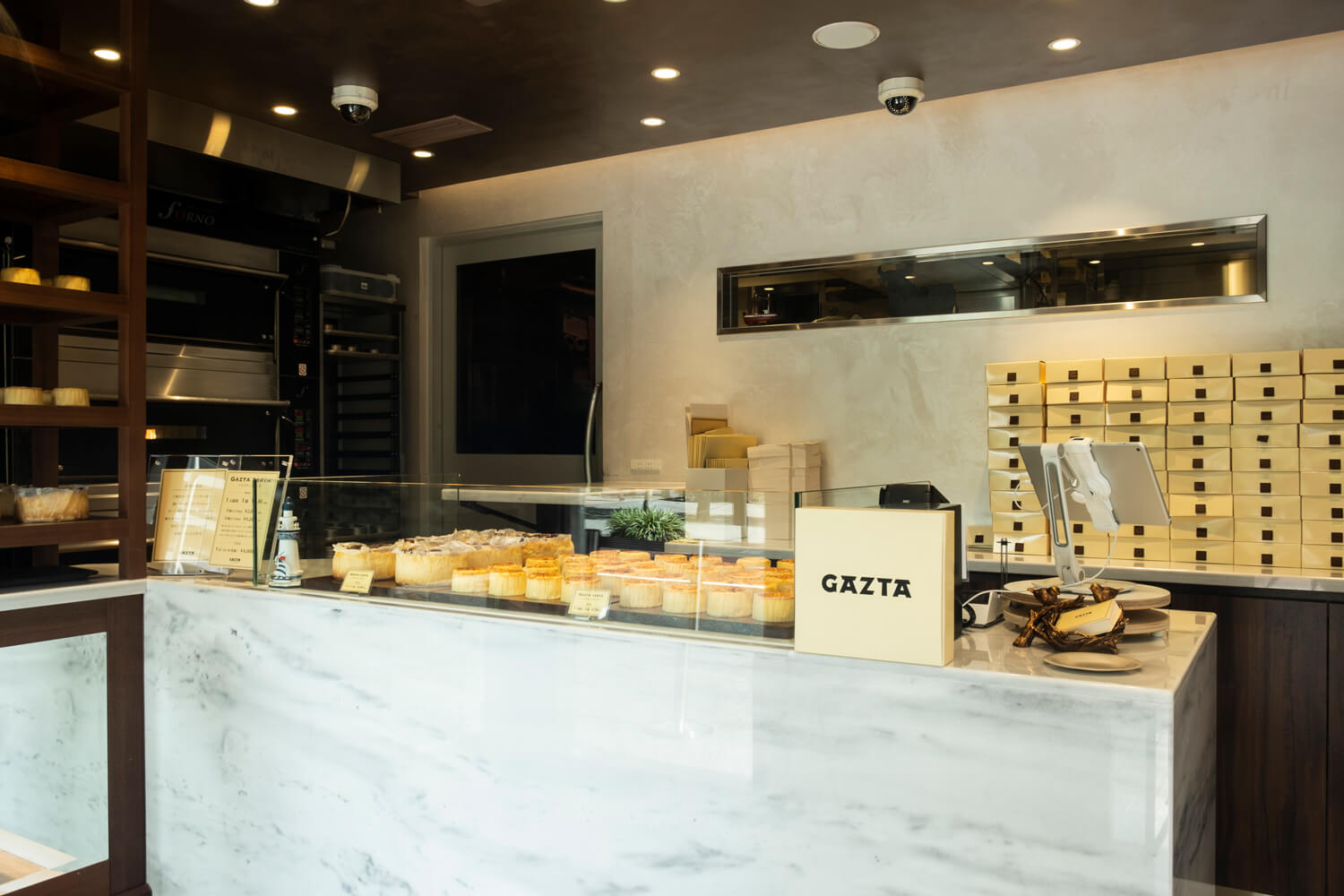 The menu offers just two cheesecakes: one 8 cm in diameter, the other 15 cm. As they come from the oven, cheesecakes are immediately placed on wooden boards full of small holes, allowing residual heat to remain in the center and radiate away gradually. While remaining true to the time-honored methods of La Viña as the origin, Katsura adjusts the heating time and temperature every morning to match the Japanese climate. Through such ingenuity, she has achieved the same robust favor and rich, creamy texture as the cheesecakes from La Viña. People begin to queue every day soon after the shop opens, and Gazta’s Basque cheesecakes are best enjoyed fresh, so be sure to enjoy them as soon as possible!