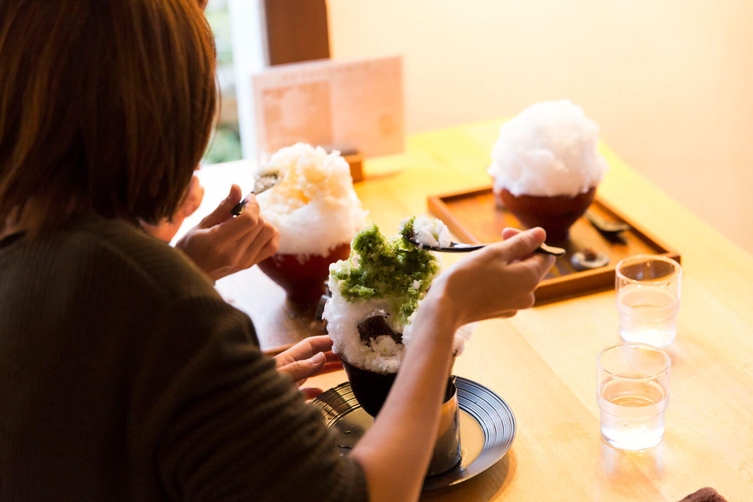 Be aware, however, that this isn’t crushed or mixed ice. Kakigori is made from a slab of ice that has been finely shaved using a mechanical ice shaver that turns the giant ice cube into tiny flakes, inside which hides the key to success for this sweet treat.