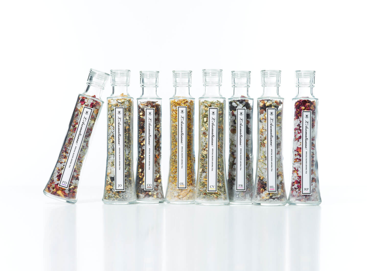 Showcasing organic products and seeking to create perfect harmony between aesthetics, aroma, and flavour, Koji Tamura has created eight sublime aromatic combinations with herb, spice, and fruit bases, like rose, lemon, vanilla, mint, star anise, and juniper berry.