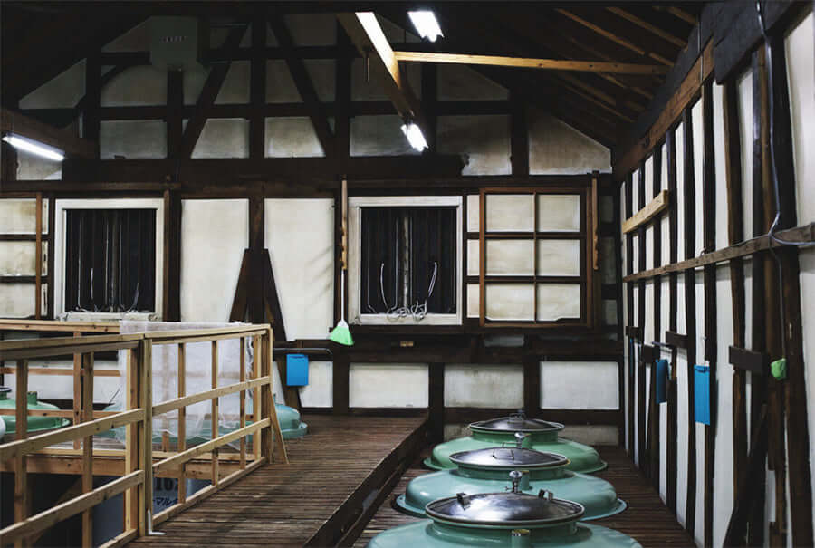 Clean, large vats. It is the bacteria in these vats that determine the personality of the sake.