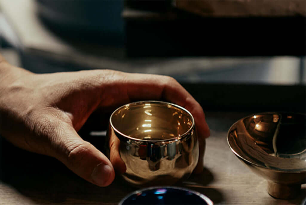 Sakazuki—nihonshu serving cups—have been changing along with the sakes they hold in recent years. Ryota Aoki, a young potter, is breaking the conventions surrounding their production.
