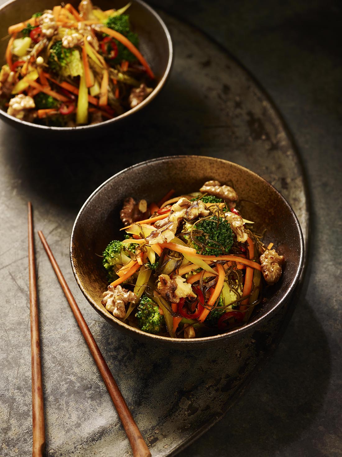 Place the pickled veg mixture in a large bowl to share or in individual bowls. Scatter the toasted walnuts on top.