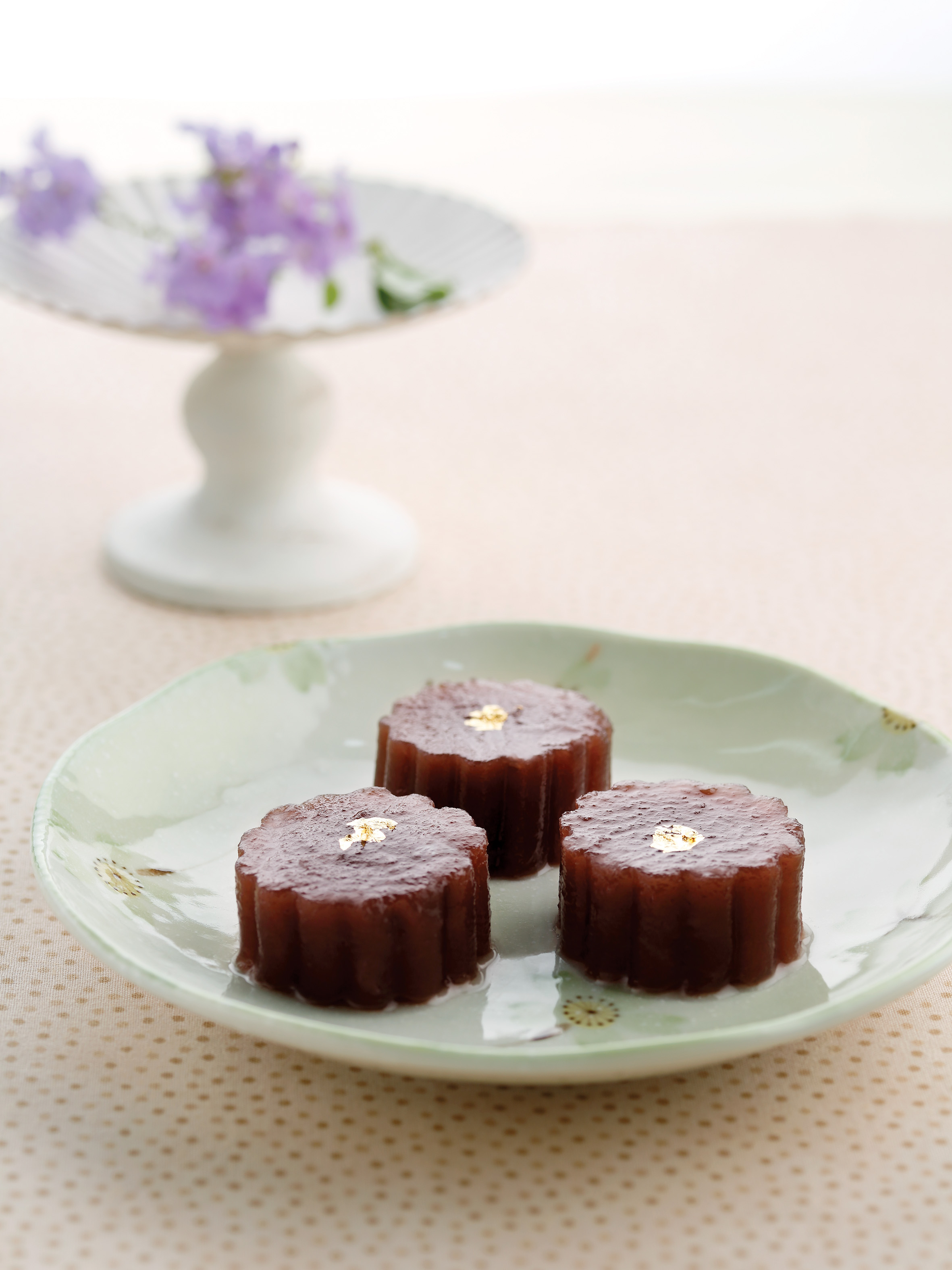 This light red bean paste jelly is made using agar-agar, a natural gelling agent that is derived from seaweed.