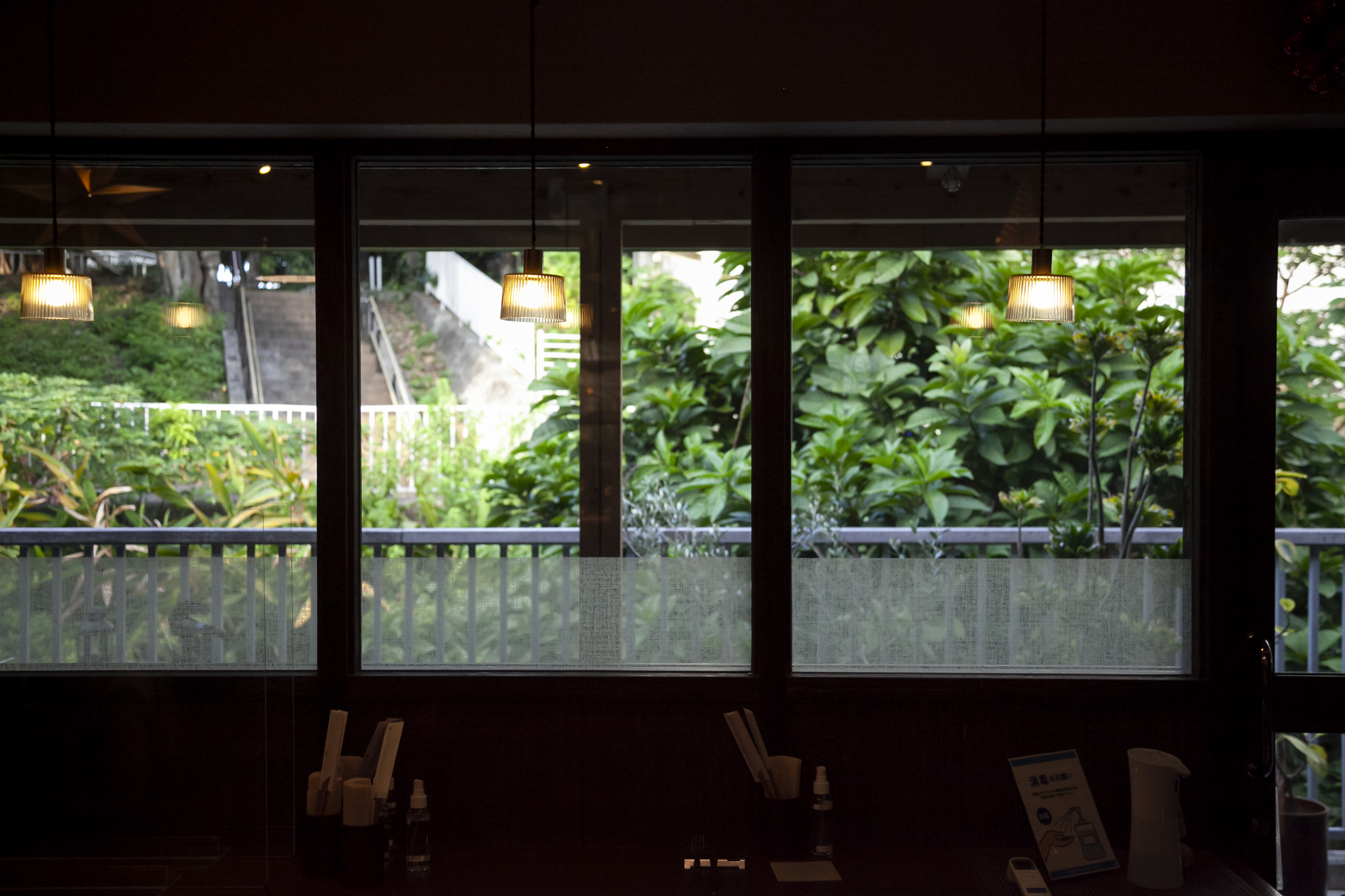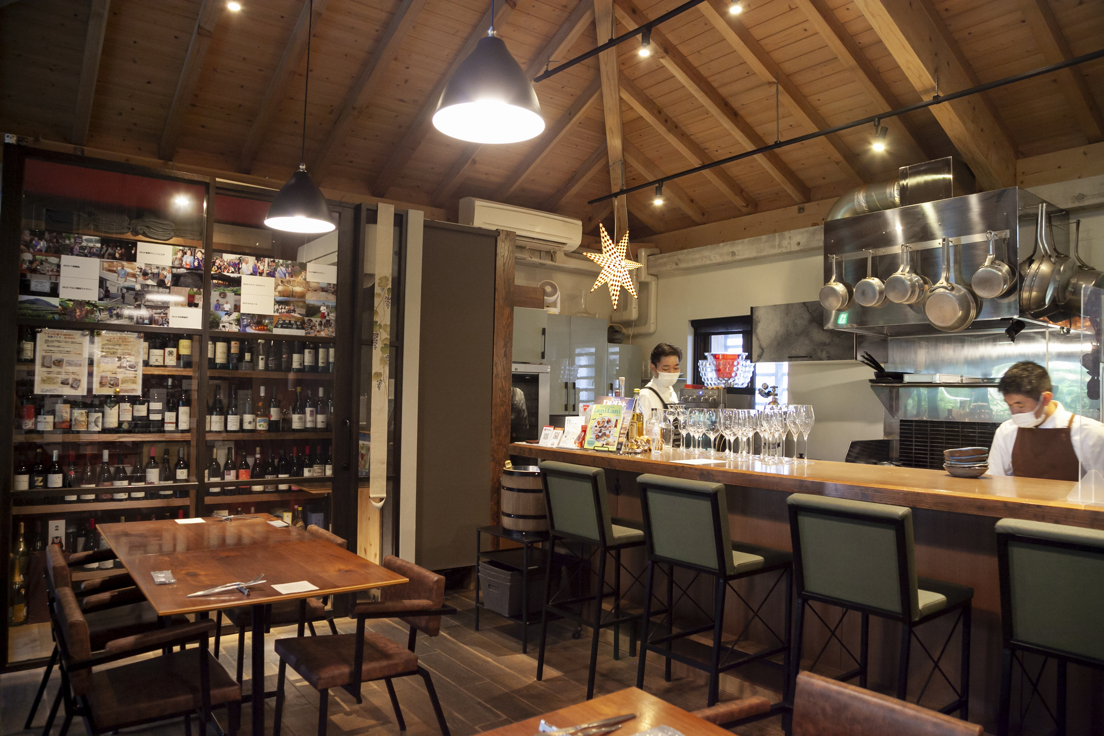 Featuring an open interior with a view of the nearby greenery, there are also terrace seats to enjoy a glass of wine outdoors on a sunny afternoon.