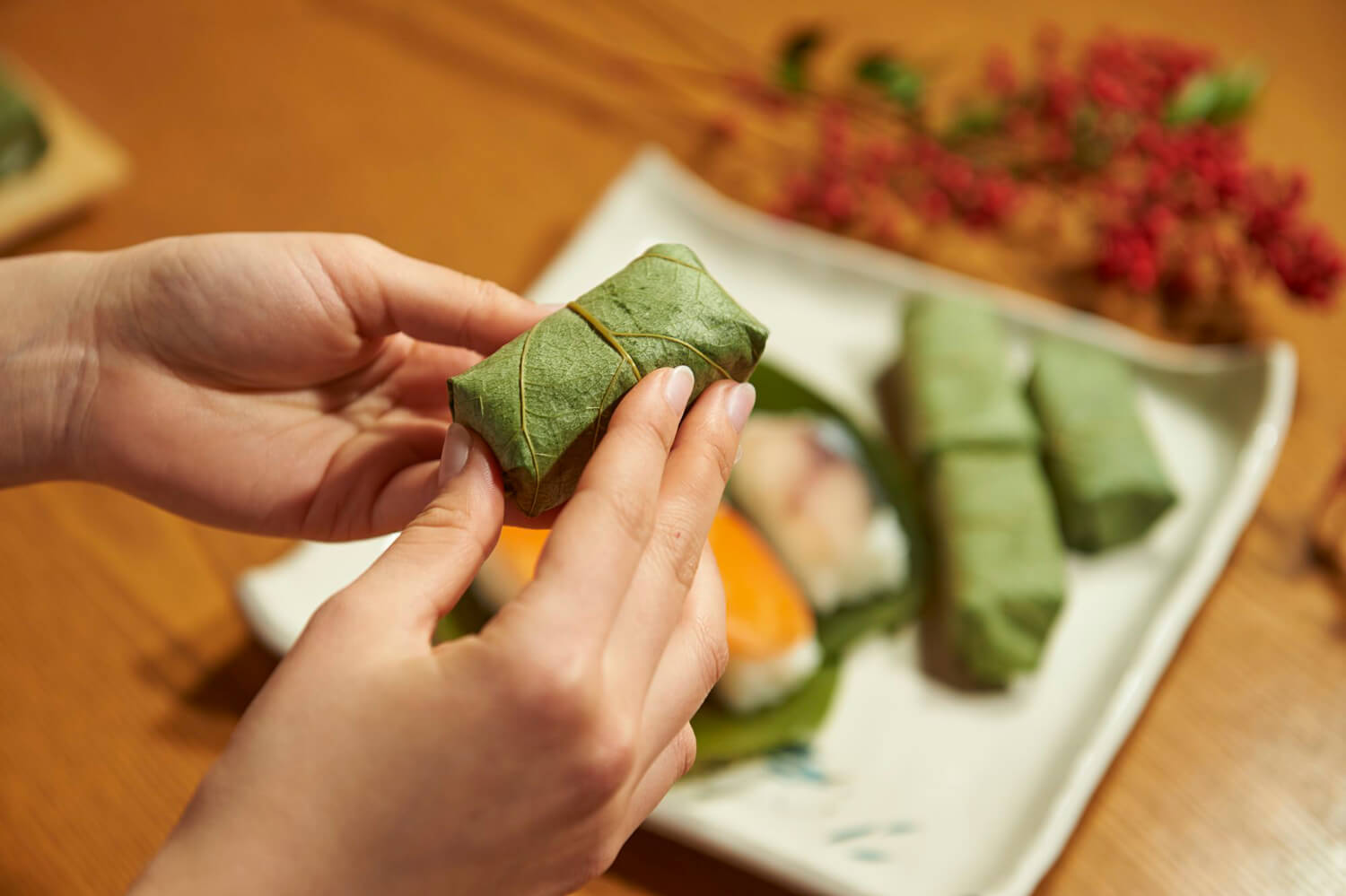 Sushi from Nara, Wrapped in a Delicate Persimmon Leaf