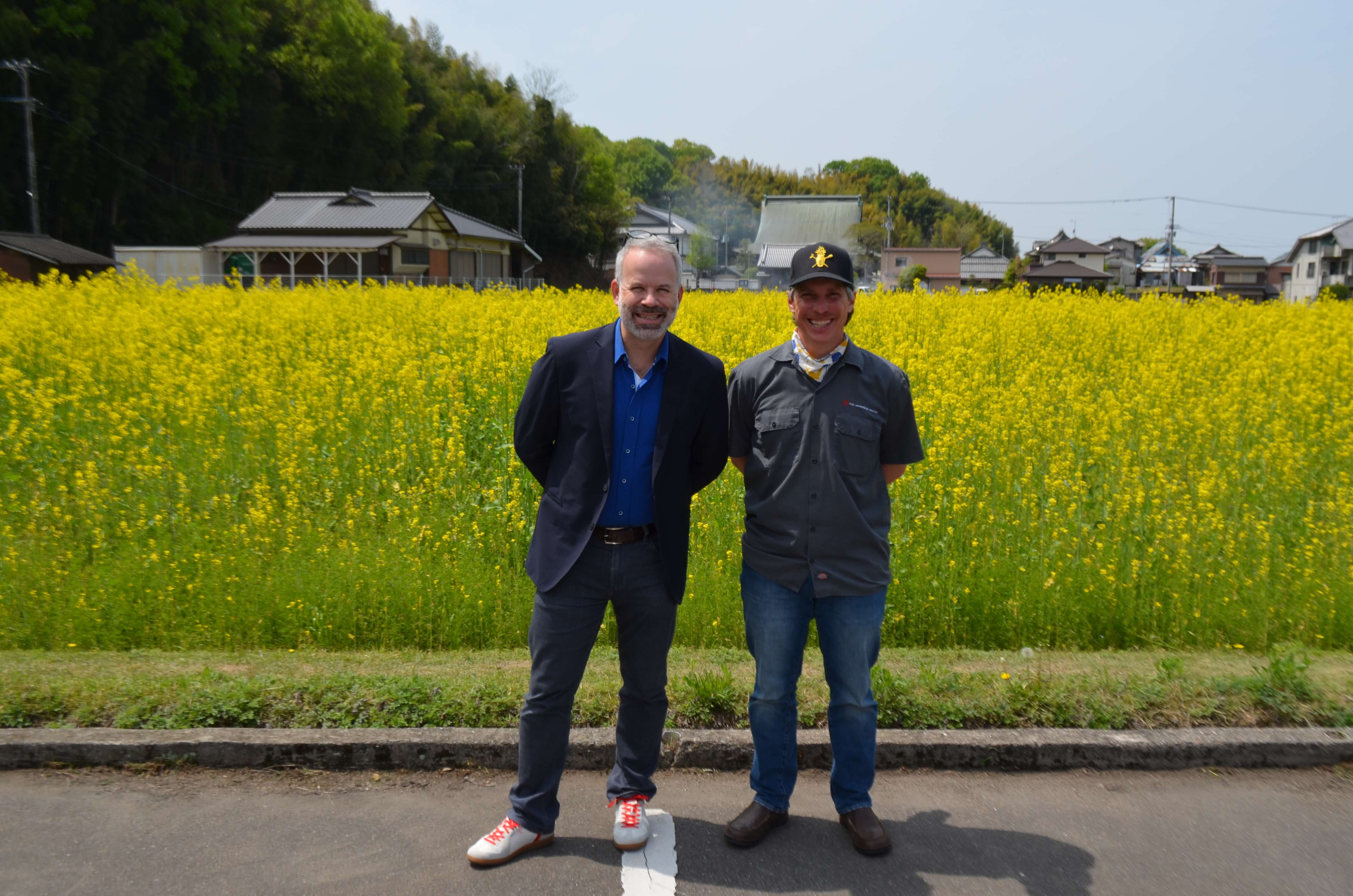 Chris Bonomo and Greg Dunmore in front of a mustard field © The Japanese Pantry