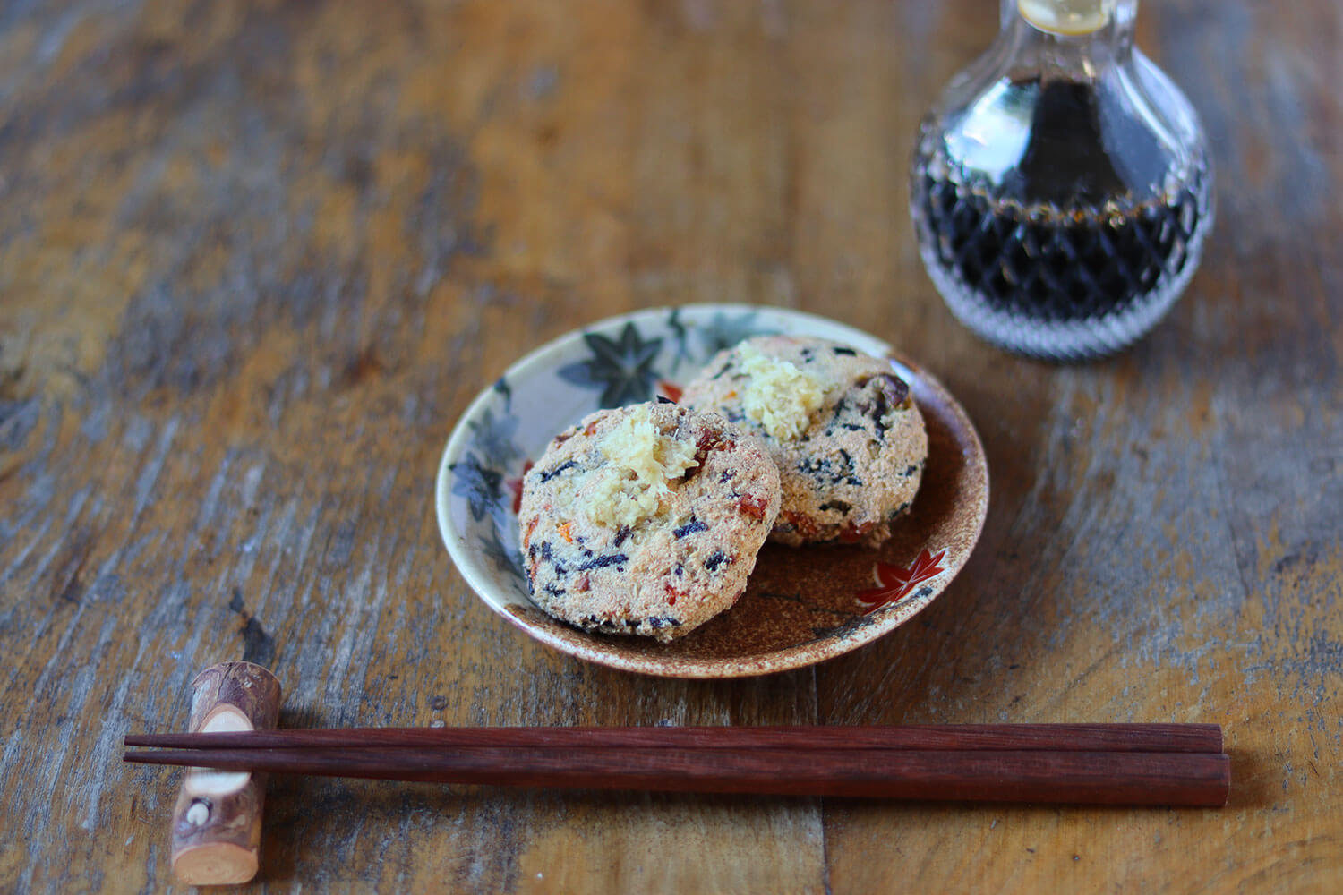 These ‘ganmo’ tofu balls, from ganmodoki (a variety of fried tofu), are the perfect autumn dish that is easy to make using seasonal ingredients, one of the criteria set out by the two authors. The tofu takes on autumnal colours with the addition of carrots, yam, shiitake mushrooms, daikon radishes and lotus roots or sesame seeds.