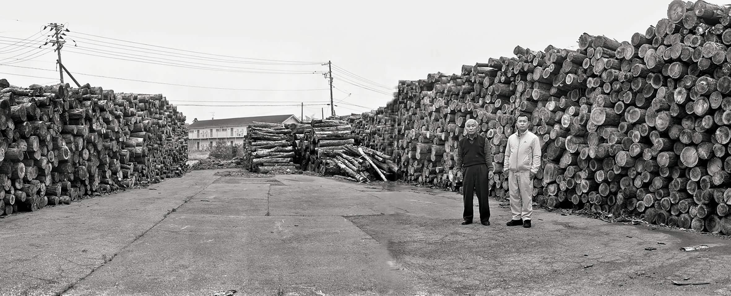 Iwane Ai “Hidehiro Asada et son père dans leur entreprise, Asada Lumber Co.”, Namie, Fukushima « Kīpuka », 2014 © Iwane Ai