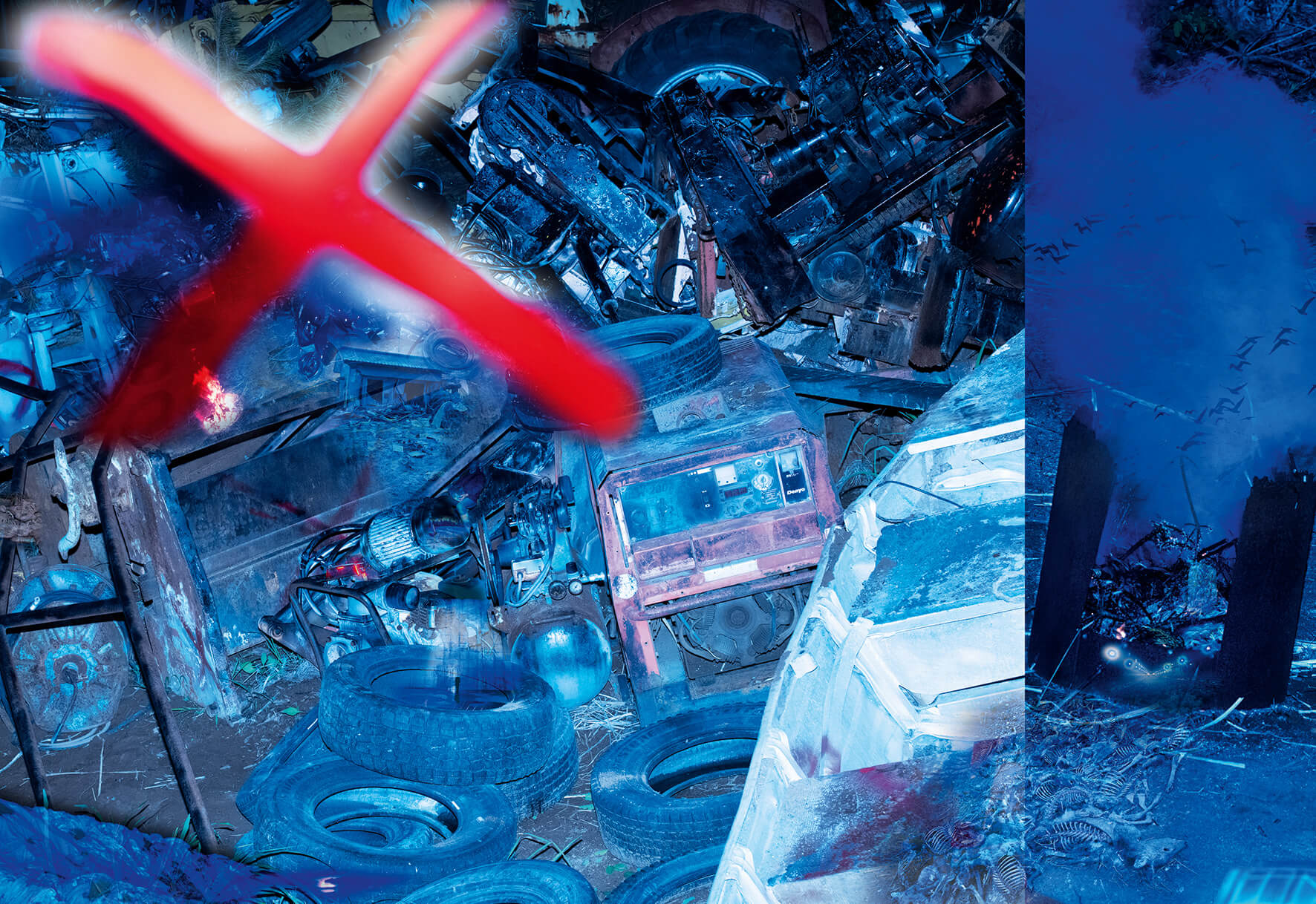 Lieko Shiga a aussi photographié le nouveau visage de la région du Tohoku, parfois aux airs de décharge à ciel ouvert, dénonçant la reconstruction forcée par le gouvernement et accélérée par les logiques capitalistes. Ses clichés aux couleurs néon de voitures et machines de chantier abandonnées, superposées à des paysages végétaux et des silhouettes humaines, ont un côté surnaturel. Une interprétation personnelle des conséquences d’un drame qu’elle a vécu intimement, puisqu’habitant depuis 2008 le petit village de Kitakama qui a perdu dans la catastrophe 54 de ses 350 habitants.
