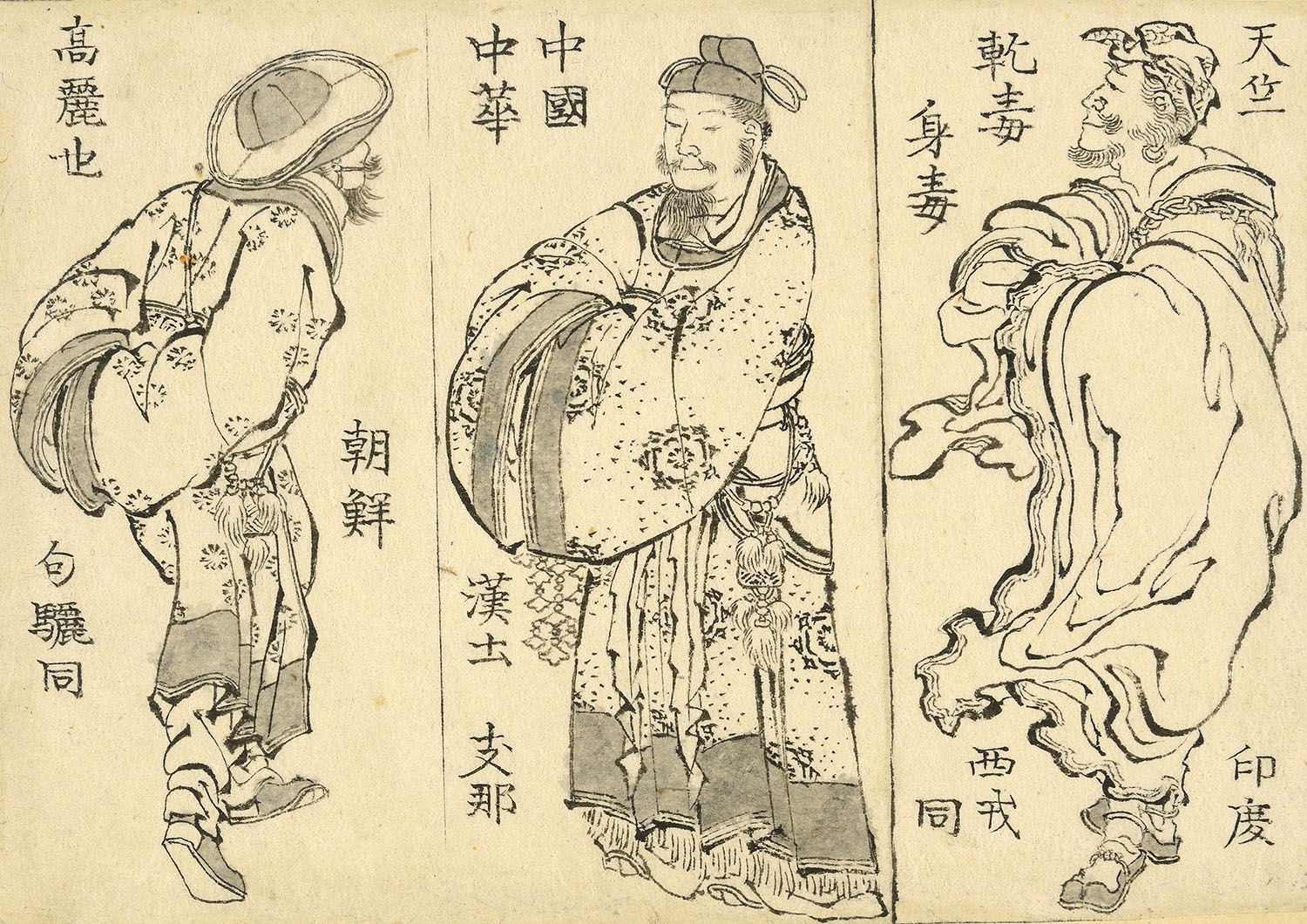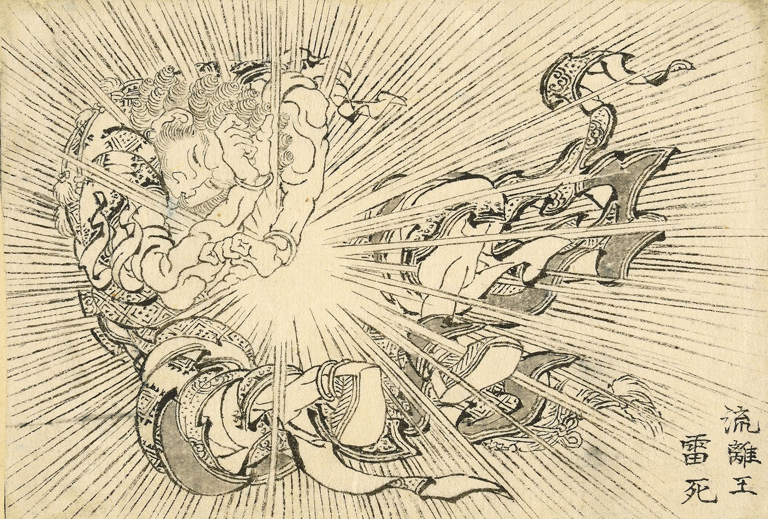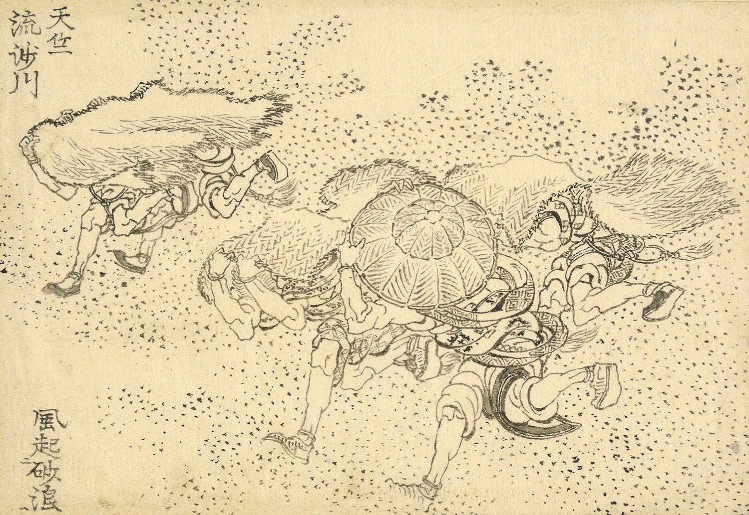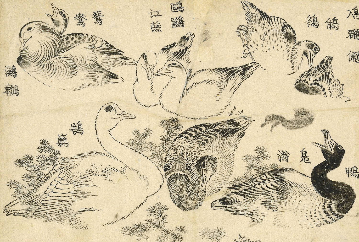 En 1829, Katsushika Hokusai, peintre dessinateur et graveur japonais réalise une série de 103 illustrations en noir et blanc. Sur celles-ci apparaissent des animaux, paysages, fleurs ou encore des créatures mythologiques. Des thèmes inspirés de la Chine ancienne, de l’Inde mais aussi de l’Asie du sud-est.
