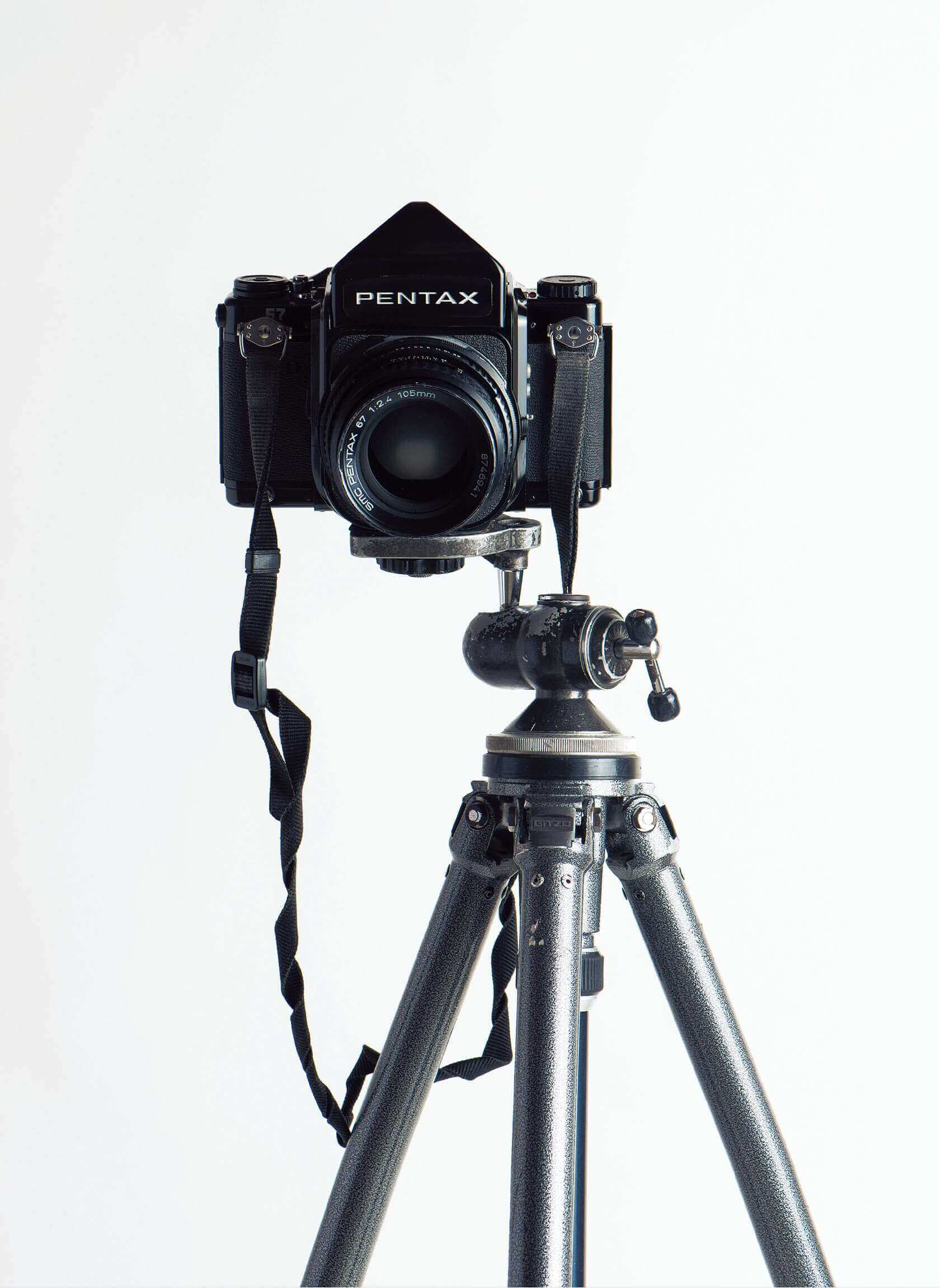 Ce Pentax 67 II, il l'utilise souvent en tant qu’appareil principal lors des séances en studio, c'est un moyen format particulièrement lourd qu’il l’utilise avec un trépied. Le bruit du déclencheur lui plaît.