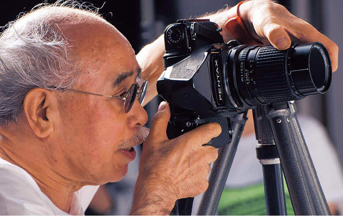 Araki, maniant son appareil comme un prolongement de son propre corps. Araki garde ses lunettes lors des séances photo, il manie son appareil comme le prolongement de son propre corps, il a toujours un mot pour son modèle lorsqu'il déclenche l’obturateur.