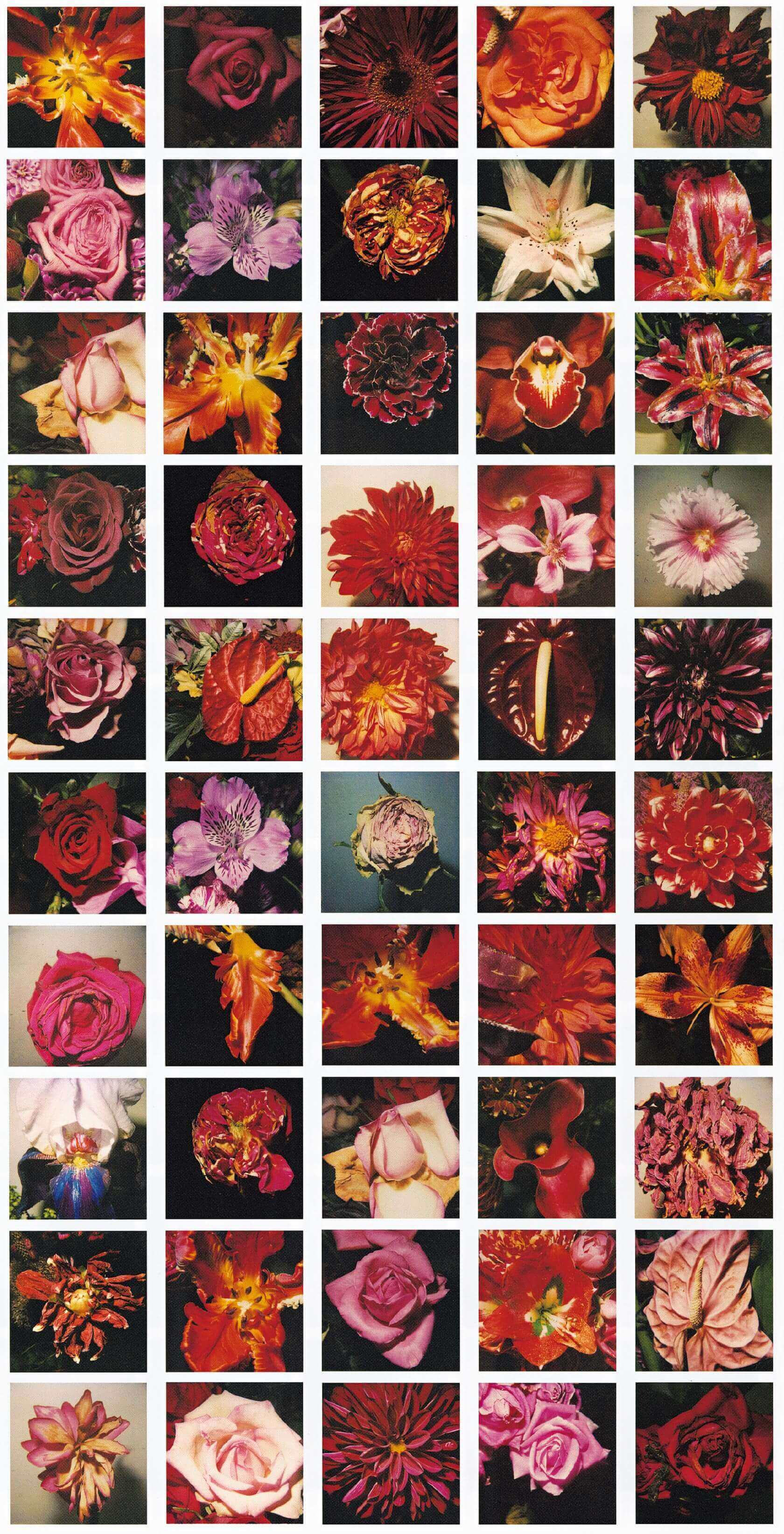 L’affection que voue Araki à son polaroïd dure depuis de longues années. Pour lui, cet appareil « donne une sensation de photographie quoique l’on prenne pour sujet. Même si la photo n’a pas pris, on a ce ressenti de matière photographique. » Cette série est faite de clichés polaroïd qui n’ont pas été exposés au public. Araki y appose des couleurs acryliques. Ces clichés perdus revivent ainsi pour servir de petite toile à ces tableaux. « Comme je ne sais pas moi-même comment vont réagir les couleurs,», elles s’imprègnent, elles coulent, et le hasard se mêle à la volonté. Ces réalisations utilisent tous les fonds de couleurs des polaroïds et l’on retrouve au milieu des traditionnels papiers blancs des versions en noirs, rouges, bleus, verts, etc. laissant à Araki la liberté et une plus grande ouverture dans ses créations à base de films polaroïd. Avec un sourire réjoui, il lance « Ça, ça marche formidablement en Europe aujourd’hui ! Ha ha ha ha ! »