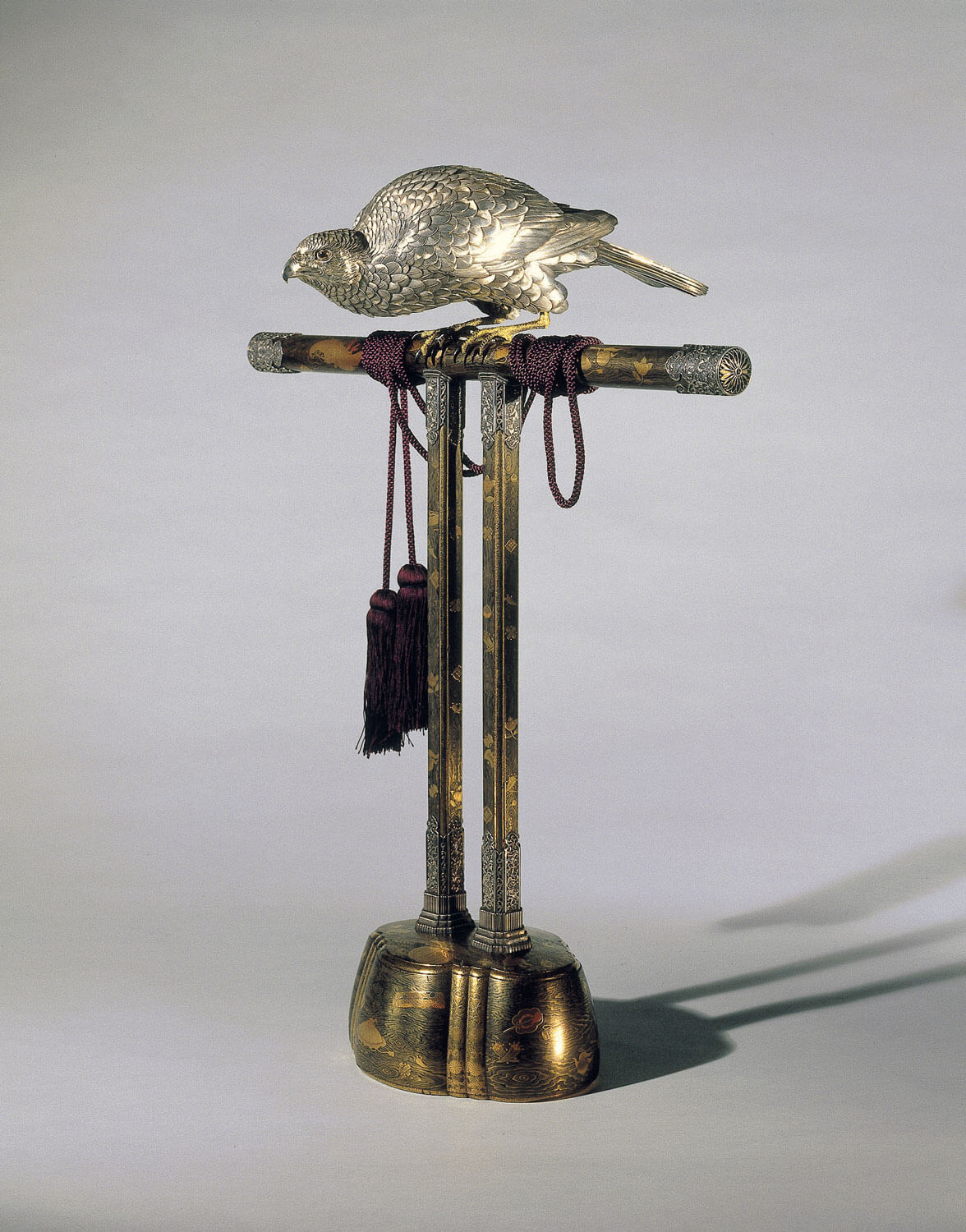 “Brûle-parfum en forme de faucon”, Sano Takachika, argent, or, bronze doré et laqué, Japon, vers 1890, H : 68,3 cm, Collection Khalili, Londres © The Khalili Collections of Japanese Art