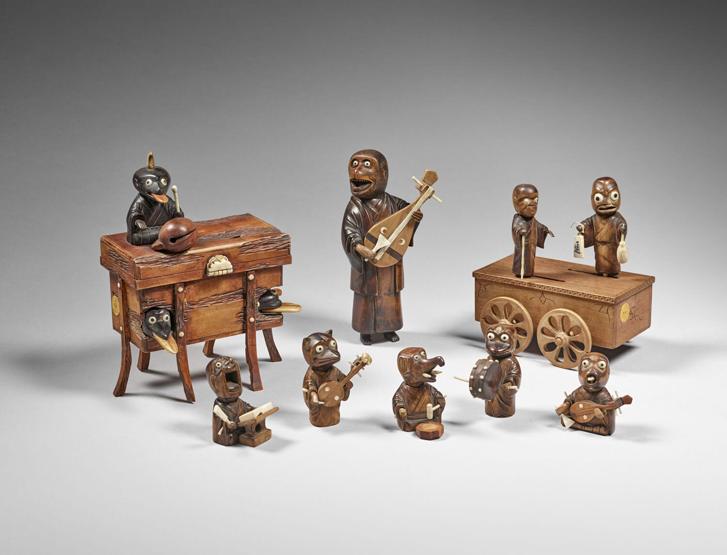 “Orchestre de monstres - bois et cornes -” Japon, seconde moitié du XIXème siècle. MNAAG Paris, Dist. RMN-GP / Thierry Ollivier