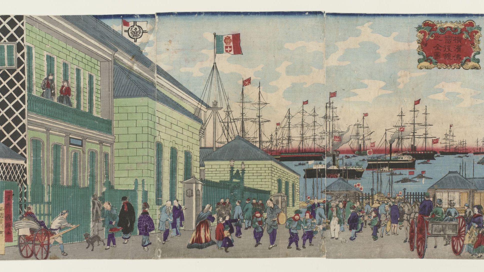 Kuniteru Utagawa, “Vue d'ensemble du quartier français de Yokohama” (estampe), 1872. © RMN-GP (MNAAG, Paris) / Thierry Ollivier