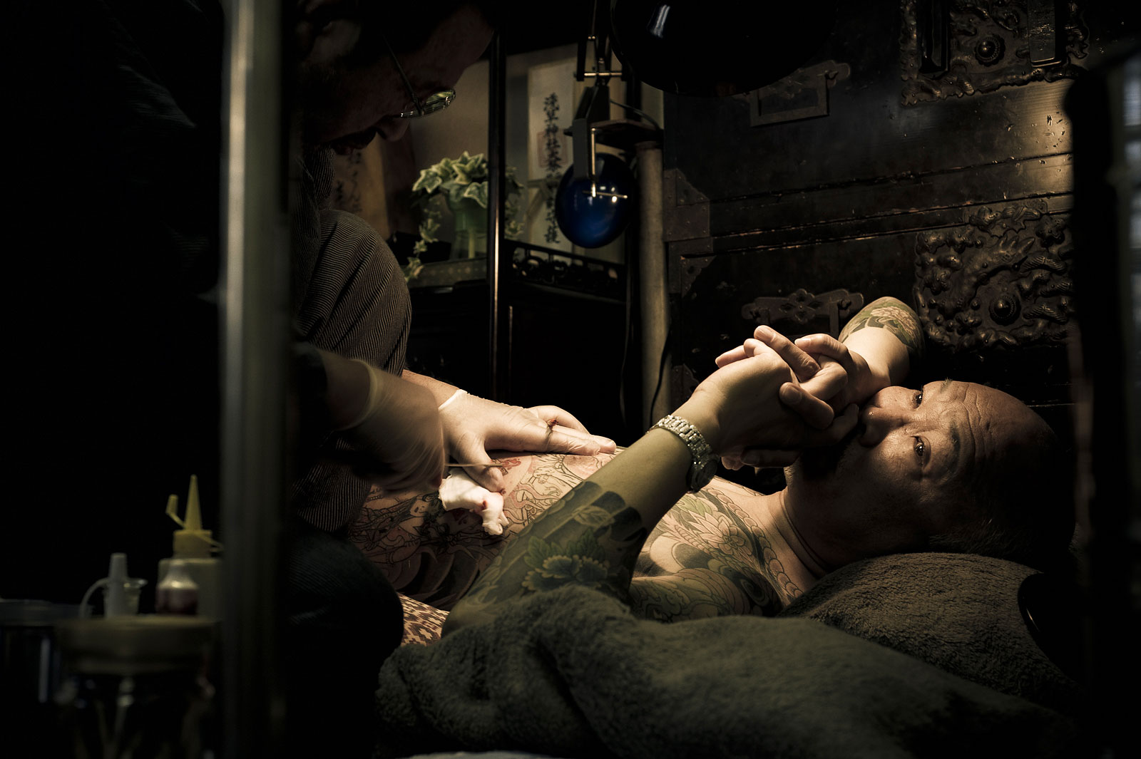Il prend alors contact, par le biais d’un fixeur, avec un des patrons d’un clan yakuza, Souichirou. S’en suivent dix mois de négociations afin de pouvoir créer une série que le photographe imagine davantage comme une oeuvre documentaire, prolongée ensuite d’une exposition et d’un livre, que comme un travail de photojournalisme.