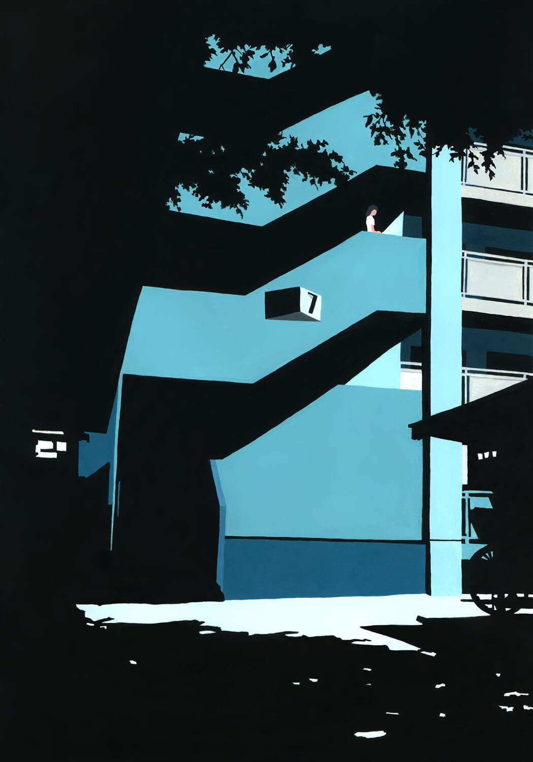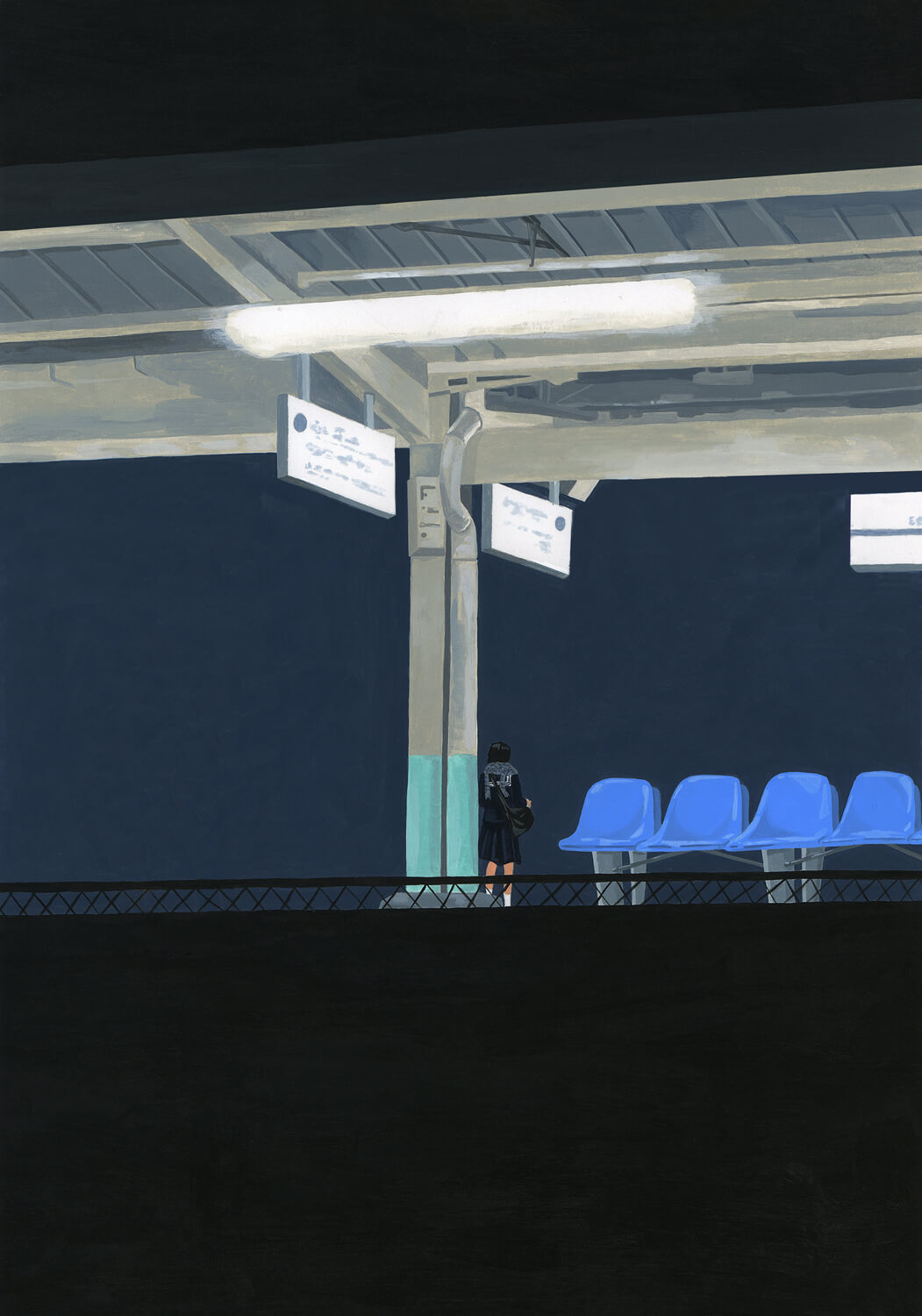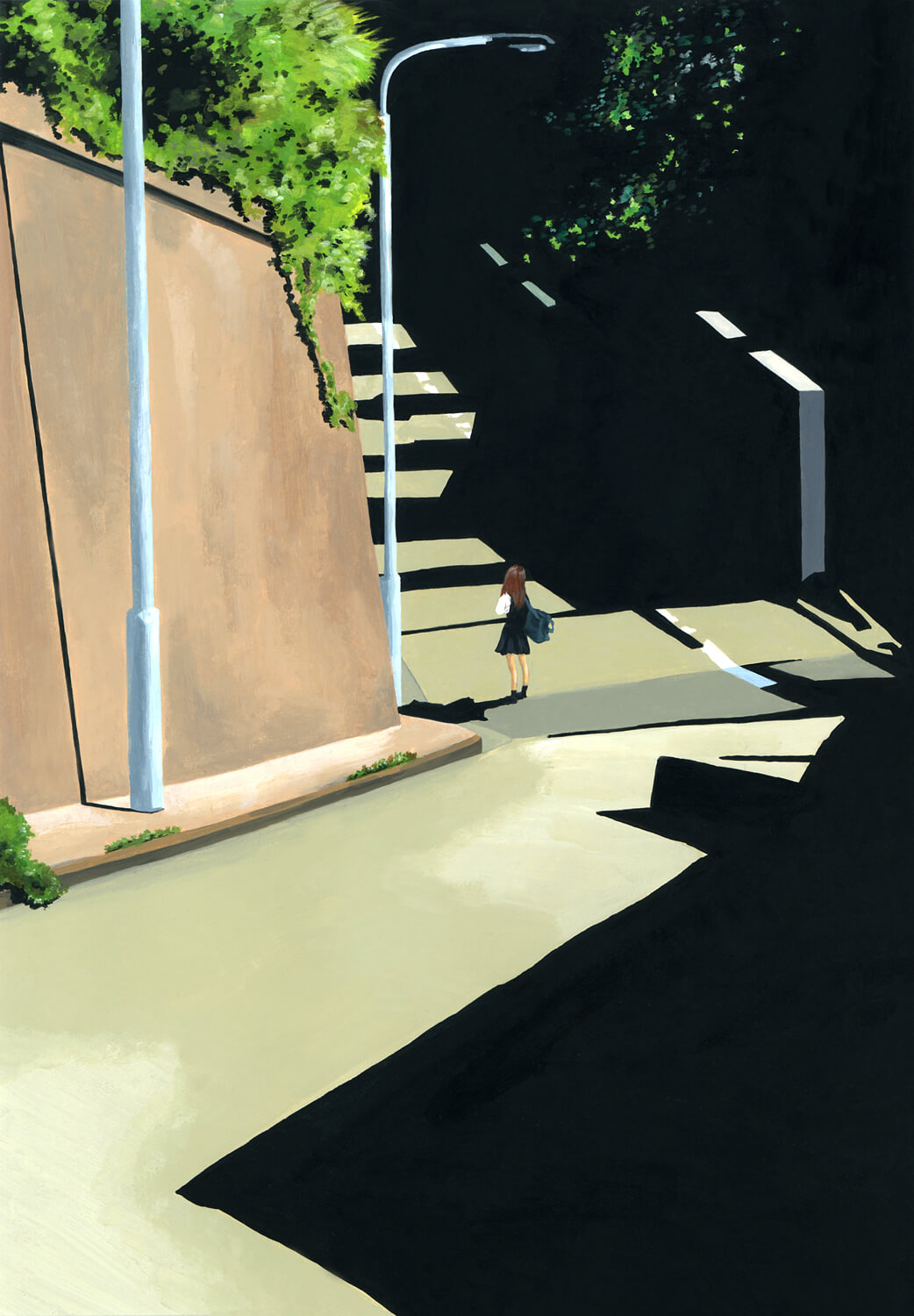 Cet illustrateur de 41 ans, basé à Chiba, s’adonne depuis une vingtaine d’années à sa passion pour la peinture. Si son thème de prédilection, les scènes de vie ordinaire, peut sembler futile au premier abord, cet ethnologue du quotidien célèbre tout bonnement la vie et sa beauté. Pour obtenir des illustrations aussi poétiques et sereines, l’artiste procède toujours de la même manière.
